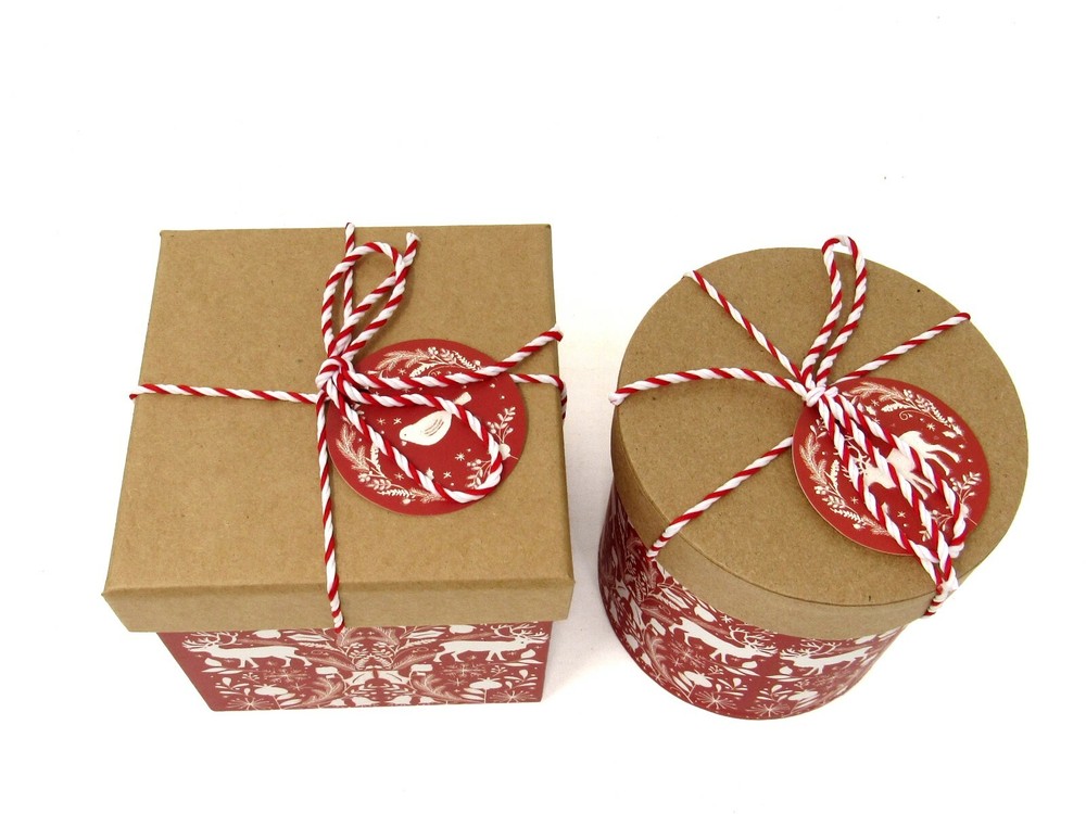 Punch Studio Set of 2 Decorative Keepsake/Gift Boxes RED CHRISTMAS SILHOUETTE with String Tie Bows and Glittered Gift Tags Details: Item # Measurements 20098 4" x 4" x 4.25" - square 20100 4.5" x 4" diam - round (measurements are estimated and taken from widest points) Due to differences in computer monitor settings actual color of item(s) may differ from what you see on your screen. NEW PAYPAL ONLY PLEASE SHIPPING: Item(s) will be shipped via your choice of services indicated herein within 1 day of receipt/clearance of payment, excluding weekends and holidays. *************** INTERNATIONAL BUYERS – PLEASE NOTE: Please see International Shipping Calculator for shipping costs, requirements and restrictions for your location prior to bidding. Import duties, taxes, and charges are not included in the item price or shipping cost. These charges are the buyer's responsibility. Please check with your country's customs office to determine what these additional costs will be prior to bidding or buying. Customs fees are normally charged by the shipping company or collected when you pick the item up. These fees are not additional shipping charges. Customs Forms will be completed with actual costs of item as "value of contents" and will NOT be marked as "gift". *************** RETURNS: I f you are not completely satisfied I will refund the purchase price (less shipping) upon return receipt of item. The following conditions apply: - Item(s) must be in unused and undamaged condition - Any attached tags must NOT be removed - Any certificates must be returned with item - Buyer pays return shipping. - If item is insured, buyer is to help file a claim and, if required, present the damaged package to their local Post Office. - Any insurance claims will be refunded after receipt of claim payment from insurance carrier. *************** All items come from a smoke free home. Although I am careful to be very accurate in my descriptions, please do not hesitate to contact me if you need further information. Your satisfaction is our priority; therefore, if you encounter any problems, please contact us right away so we can resolve any concerns you may have.