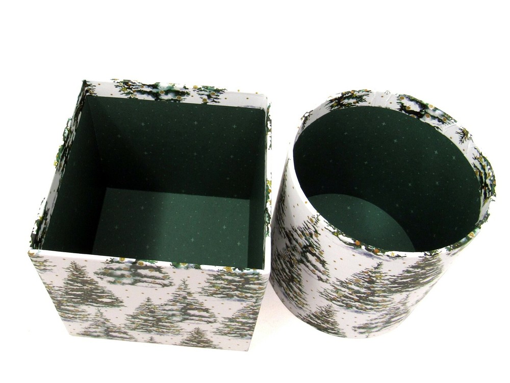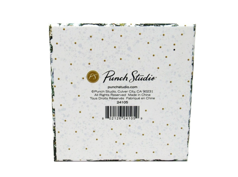 Punch Studio Set of 2 Decorative Keepsake/Gift Boxes SNOWY CHRISTMAS TREES with String Tie Bows and Gold Foil Accented Gift Tags Details: Item # Measurements 24105 4" x 4" x 4.25" - square 24107 4.5" x 4" diam - round (measurements are estimated and taken from widest points) Due to differences in computer monitor settings actual color of item(s) may differ from what you see on your screen. NEW PAYPAL ONLY PLEASE SHIPPING: Item(s) will be shipped via your choice of services indicated herein within 1 day of receipt/clearance of payment, excluding weekends and holidays. *************** INTERNATIONAL BUYERS – PLEASE NOTE: Please see International Shipping Calculator for shipping costs, requirements and restrictions for your location prior to bidding. Import duties, taxes, and charges are not included in the item price or shipping cost. These charges are the buyer's responsibility. Please check with your country's customs office to determine what these additional costs will be prior to bidding or buying. Customs fees are normally charged by the shipping company or collected when you pick the item up. These fees are not additional shipping charges. Customs Forms will be completed with actual costs of item as "value of contents" and will NOT be marked as "gift". *************** RETURNS: I f you are not completely satisfied I will refund the purchase price (less shipping) upon return receipt of item. The following conditions apply: - Item(s) must be in unused and undamaged condition - Any attached tags must NOT be removed - Any certificates must be returned with item - Buyer pays return shipping. - If item is insured, buyer is to help file a claim and, if required, present the damaged package to their local Post Office. - Any insurance claims will be refunded after receipt of claim payment from insurance carrier. *************** All items come from a smoke free home. Although I am careful to be very accurate in my descriptions, please do not hesitate to contact me if you need further information. Your satisfaction is our priority; therefore, if you encounter any problems, please contact us right away so we can resolve any concerns you may have.