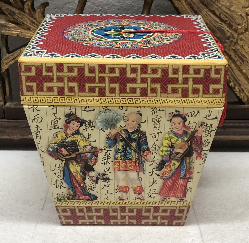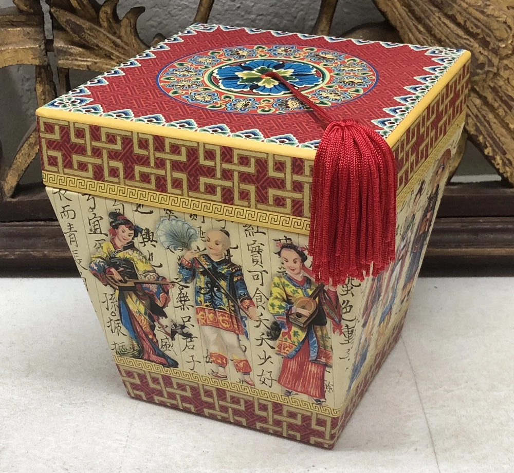 Bottom size is about 3 3/4" square and open out to 5 1/4" square. Item does have some wear. See pictures for more details Location 2W...