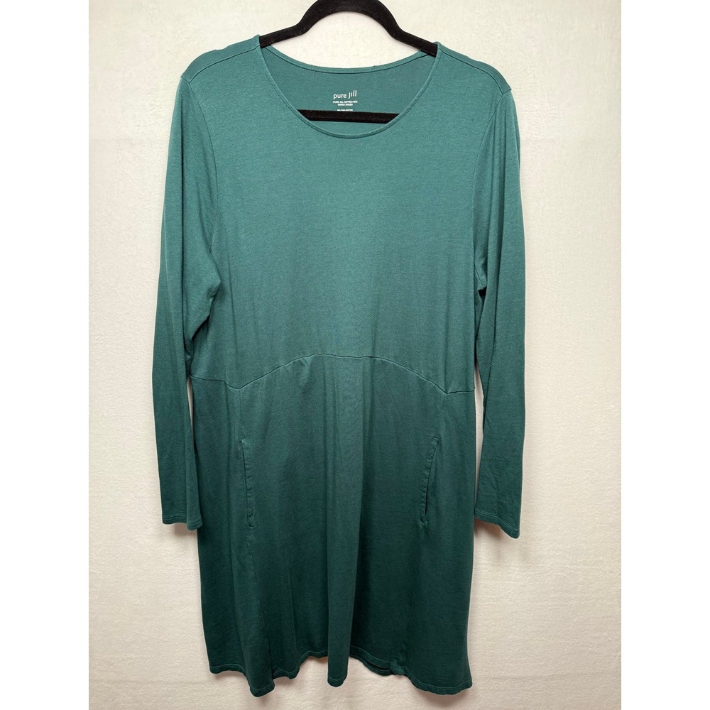 <![CDATA[<div>Pure Jill Dipped Hem Swing Dress Emerald Green Size Large 21” across chest 38” long 25” sleeve Excellent pre-owned condition Smoke free Quick shipping...