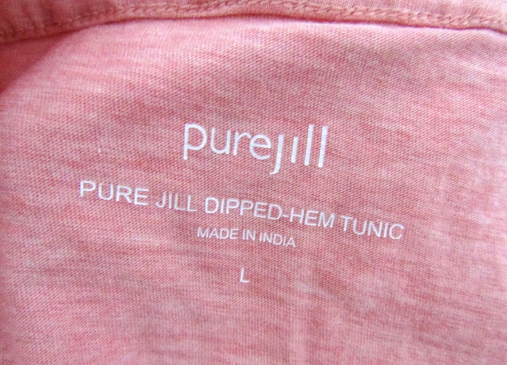 PURE JILL J. JILL SIZE L SLEEVELESS DIPPED HEM TUNIC TOP NEW, WITHOUT TAGS PRETTY PEACHY PINK COLOR SUPER SOFT 100% PIMA COTTON KNIT MEASURES APPROX, 21" ARMPIT TO ARMPIT AND 30" FROM TOP SHOULDER SEAM TO HEM SMOKE AND PET FREE HOME