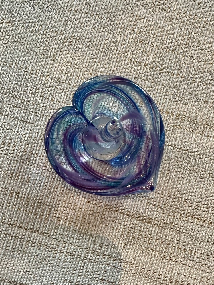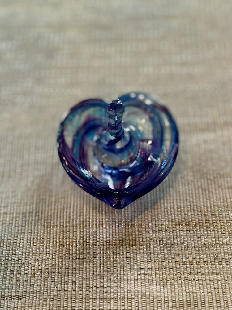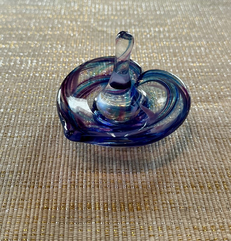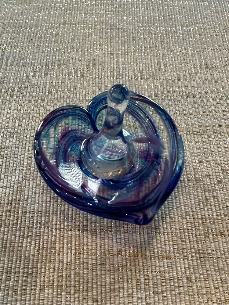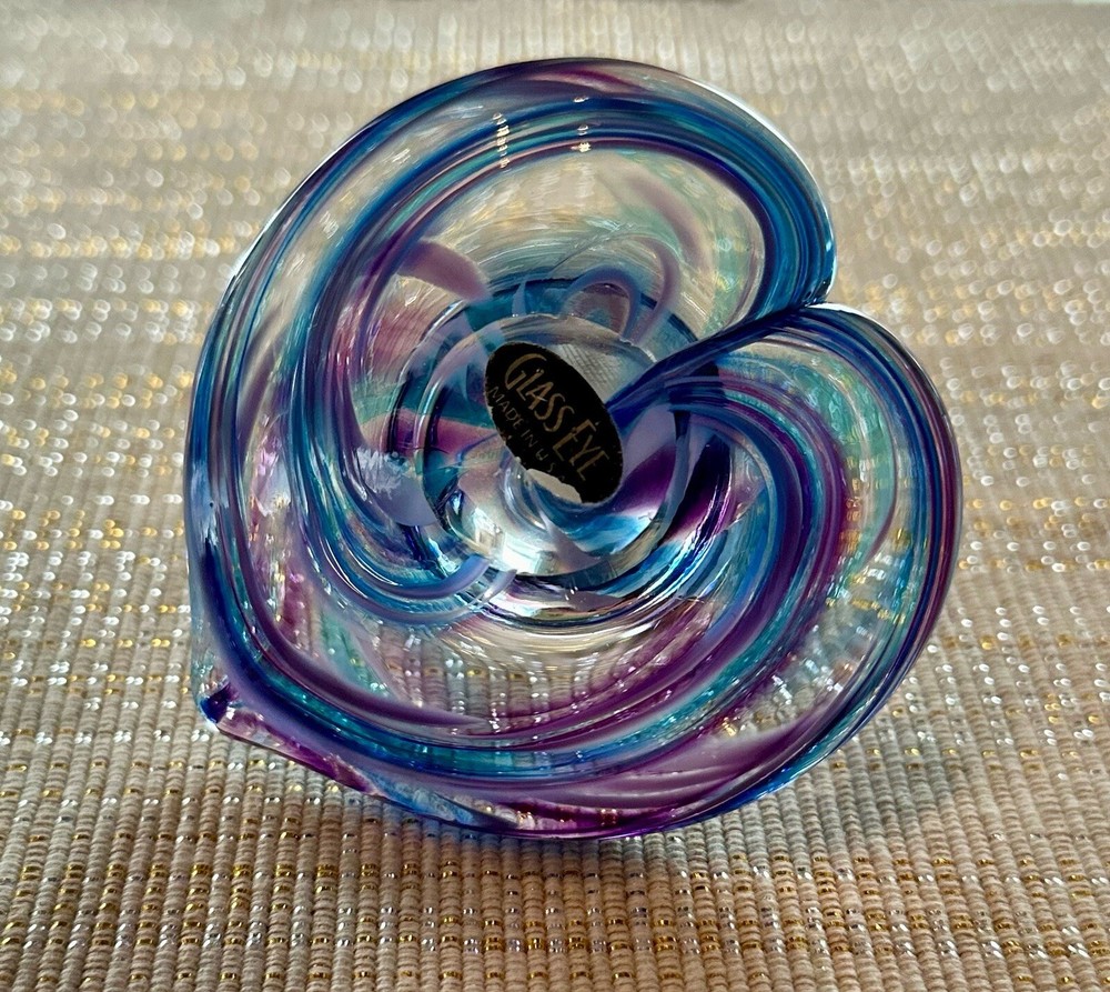 Add a touch of whimsy to your jewelry collection with this beautiful heart-shaped ring holder from Glass Eye Studio. Hand-blown with care in the United States, this jewelry organizer is made of high-quality glass and features a vibrant multicolor design. Measuring 3 inches in width, it is suitable for holding rings and other small jewelry items. Perfect for those who love unique and stylish jewelry storage solutions. PLEASE NOTE: Many of the items we sell are vintage, pre-owned, or used items, so please understand they will not be absolutely perfect and may have a some wear. We will disclose any flaws we see to the best of our ability. We provide photos, please review photos carefully, as they represent an accurate description of the item for sale. For questions pertaining to items, please ask before bidding or buying. We're happy to supply you with additional photos through eBay message links. If you have purchased an item, paid promptly and provided a good mailing address, we will leave you positive feedback upon a completed transaction with you, the Buyer, being 100% satisfied through leaving us positive feedback. If you purchase one of our items through the "Buy It Now" option, payment is requested at the time of purchase. We never knowingly misrepresent any item. If an error has occurred please contact us directly within 3 days of receiving your item so we can correct the issue professionally. We want to make it right. If the item is damaged or broken upon receipt please take pictures of the item and the packaging so that an insurance claim can be processed. International Shipping is offered through eBay's Global Shipping Program. We primarily use USPS but other carriers may be substituted based on lowest cost. Your item will be mailed within 2 business days after payment is received/cleared, excluding Saturdays, Sundays, and Holidays. Shipping quotes are only for the lower 48 states, there may be additional cost to other states outside the lower 48 but we do our best to keep shipping cost down. We do not ship to APO addresses. Buyer pays shipping charges unless otherwise stated in the listing. This item will include insurance cost which is reflected in shipping cost. All sales are final. Returns accepted only if item is significantly not as described. Lastly, Thank You for your business. Please see our other listings and save us as a favorite seller!!
