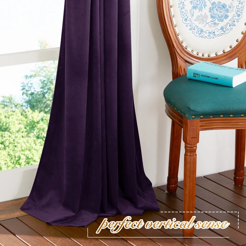 These purple velvet curtains are absolutely stunning! The rich color and soft texture instantly elevate any room, giving it a luxurious theater-like vibe. They block light perfectly, making them ideal for movie nights or afternoon naps. The 84-inch length is generous, and the two-panel set provides full coverage. The heavy fabric also helps with insulation, keeping the room cozy. Installation was a breeze, and they look even better in person than online. A fantastic upgrade for both style and function!
