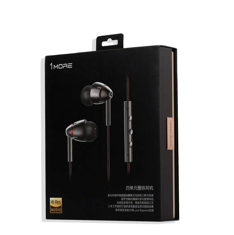 FOUR DRIVERS - Diamond-like carbon dynamic driver (like mini speakers) + 3 balanced armatures (like mini tweeters) deliver unsurpassed dynamic power and definition. METICULOUS DESIGN - Streamlined aluminum sound chamber with perfected ergonomics ensures exceptional comfort and noise isolation.Rated Power:5 mW INTELLIGENT CONTROLS WITH MICROPHONE - Conveniently located in-line controls allow you to effortlessly change volume, skip songs, and make crystal clear calls. DELUXE ACCESSORIES - Luxurious Gift Box, includes a faux leather traveling case, 8 different sets of ear tips, and a 3.5mm to Type-C adapter. TUNED TO PERFECTION - Expertly tuned by Grammy winning sound engineer Luca Bignardi for a fully balanced and ultra-realistic soundstage.
