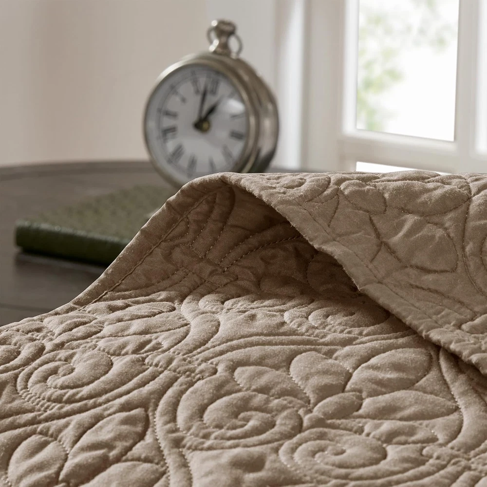 Store New Arrivals Add to Favorite View Feedback Contact Quebec 3 Piece Bedspread Set - King - Khaki Description Item model number MP13-1566 Style Bedspread Assembly required No Pattern Damask Country of Origin China Theme Bohemian,Modern,Damask Department unisex-adult Number of Pieces 3 Specifications certified frustration-free Product Dimensions 120 x 118 x 0.13 inches Material Microfiber Seasons All, Summer Is Discontinued By Manufacturer No Included Components Quilt Item dimensions L x W x H 120 x 118 x 0.13 inches Fabric Type 100% Microfiber Face & Reverse, Filling: 90% Cotton, 10% Olefin Item Weight 10.08 pounds Color Khaki Global Trade Identification Number 00675716624910 Batteries required No Product Care Instructions Machine Wash Size King 100% Microfiber Face & Reverse, Filling: 90% Cotton, 10% Olefin Madison Park Quebec Reversible Bedspread Set is the perfect classic update to your bedroom décor. Bedspread dimension is oversized to drape better on high depth mattress The classic stitch pattern pairs easily with your existing decor and will sure to add a new decorative element to your bedroom Naturally lightweight fabric perfect for summer use or layer it on for cold weather Set includes: 1 Bedspread: 120"W x 118"L, 2 King Shams: 20"W x 36"L Care instructions: machine washable The Madison Park Quebec Reversible Bedspread Set offers a charming cottage-inspired update to your bedroom. The reversible bedspread and shams (1 in Twin/TwinXL) flaunt a classic stitch pattern that creates a rich depth and texture on the face of the bedding set. Prewashed cotton filling provides added comfort and durability, while the oversized dimensions allow the bedspread to drape better. ABOUT US We offer the best prices around on high quality products. Our E-store includes media such as books, movies, music and games while offering electronics, toys, sporting apparel, clothing, tools, general home, garden items and more. SHIPPING We are always working hard to ensure your package arrives as soon as possible. Please understand that some factors like weather, high postal traffic, and the performance of shipping companies are outside of our control. We offer free shipping to the lower 48 states and ship within 2 business days of payment, usually sooner. We do not accept P.O. Boxes. Please provide a physical address. For shipping outside of the continental USA, we only use eBay's Global Shipping Program.The item is shipped to KY and then sent to the rest of the world. International customers are responsible for all duties and taxes. Continue to check out in order to calculate costs for shipping the item to your country. Messages regarding eBay's Global Shipping Program MUST be directed at eBay EXCLUSIVELY. RETURNS We offer a 30-Day Return Policy on items which you are not completely satisfied with. You have the option for a full-refund or an exchange of the item. No returns are available on items shipped outside of the USA. PAYMENT We accept PayPal. CONTACT US This page content is yet to come Please ad us to your favorite seller and visit again later Thank You CUSTOMER SATISFACTION We try our very best to make sure every customer is completely satisfied. If there's a problem, message us! We're happy to help. WE ACCEPT Copyright © 2021 AutoDS. | All Rights Reserved