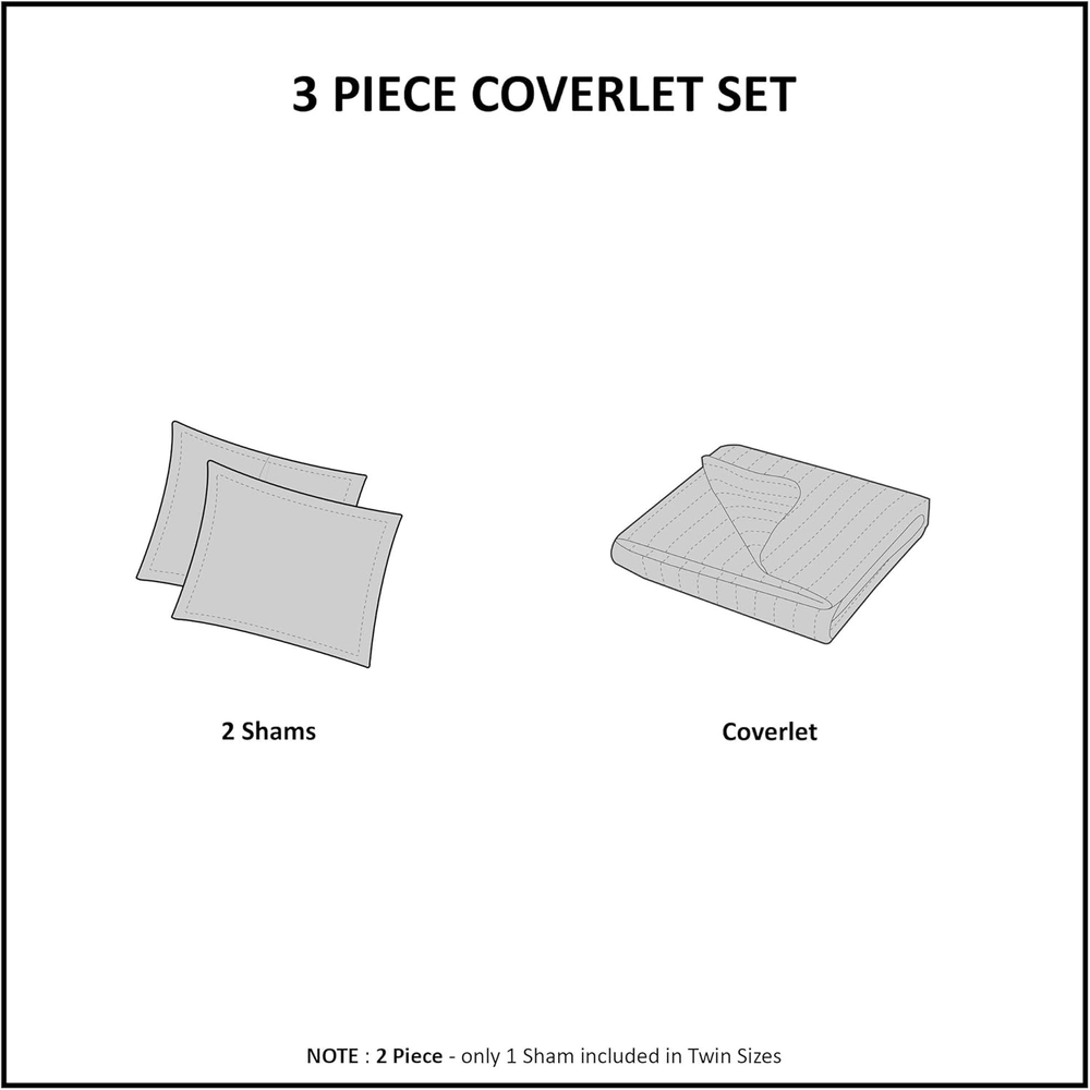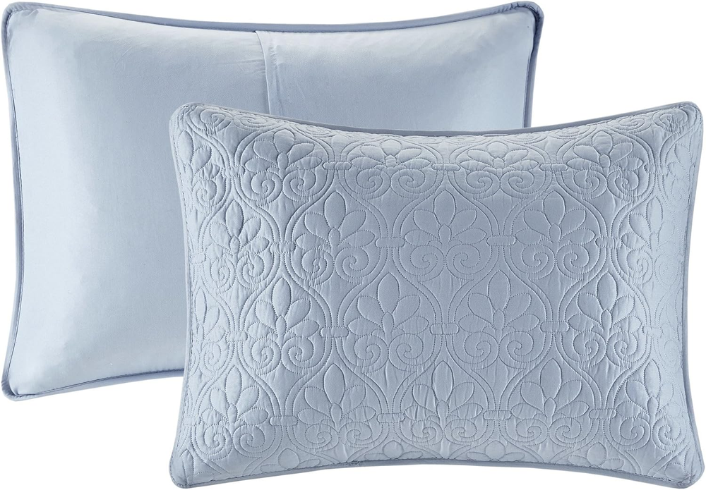 Menu Other Items Feedbacks About Us Contact Us Add To Favorites Quebec Dusty Pale Blue 3-Piece Quilted King Coverlet Set—For King or Cal King Bed –Ideal for Warm Climate Room Décor or Add-On for Extra Warmth 100% Microfiber Face & Reverse, Filling: 90% Cotton, 10% Olefin Imported Soft microfiber fabric in dusty pale blue in all over floral pattern quilting Set includes 1 coverlet, 2 shams Face fabric 100% polyester, 90/10 cotton/other fiber filling for optimal comfort Measurement: 104-by-94-inch coverlet, 20-by-36-inch King shams Machine washable for easy care The Madison Park Quebec Reversible Coverlet Set offers a charming cottage-inspired update to your bedroom. The coverlet and shams (1 in Twin/TwinXL) flaunt a classic stitch pattern that creates a rich depth and texture on the face of the bedding set. Prewashed cotton filling provides added comfort and durability making it the perfect for use in the summer or as a layering piece in the winter. Item Specification Item model number MP13-367 Style Reversible Coverlet Set Assembly required No Pattern Damask Country of Origin China Theme Bohemian,Modern,Damask Import Imported Number of Pieces 3 Batteries required No Product Dimensions 104 x 94 x 0.25 inches Material Microfiber Seasons All, Summer Is Discontinued By Manufacturer No Included Components 1 Coverlet, 2 King Shams Item dimensions L x W x H 104 x 94 x 0.25 inches Fabric Type 100% Microfiber Face & Reverse, Filling: 90% Cotton, 10% Olefin Item Weight 7.83 pounds Color Blue Global Trade Identification Number 00675716438845 Product Care Instructions Machine Wash Size King/California King(104 in x 94 in) Dimensions Shipping Returns Additional Info Product Dimensions: 94.0 inches x 104.0 inches x 0.25 inches. Weight: 7.83 lb Fast shipping is very important for us. Our standard shipping service is FREE. Your order will be shipped within 1-3 business days upon full payment received. Most items are delivered within 3-5 business days, however, please allow 3-10 business days. We are shipping only to USA. We only ship to the confirmed Paypal address. We reserve the right to cancel any order for any reason at any time. We are not responsible for undeliverable addresses. We offer a 30 day return policy from checkout winning date. Your satisfaction is guaranteed! If for any reason you are unhappy with your item, just return it within 30 days for a full refund, minus shipping cost. Please contact us prior to initiating a return so that we can issue you a refund authorization. Items defective upon receipt must be packaged in their retail packaging as if new and returned with a detailed description of the problem. Return shipping fees are not refundable. We reserve the right to decline any returns if the above guidelines are not followed. All of our items, unless otherwise stated, will only run on 120 volts. Please check to make sure your country complies with these specifications. If you have a problem or question regarding your transaction please contact us before leaving any type of feedback. We will work with you to resolve any problem you may have.