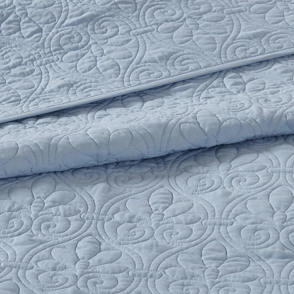Menu Other Items Feedbacks About Us Contact Us Add To Favorites Quebec Dusty Pale Blue 3-Piece Quilted King Coverlet Set—For King or Cal King Bed –Ideal for Warm Climate Room Décor or Add-On for Extra Warmth 100% Microfiber Face & Reverse, Filling: 90% Cotton, 10% Olefin Imported Soft microfiber fabric in dusty pale blue in all over floral pattern quilting Set includes 1 coverlet, 2 shams Face fabric 100% polyester, 90/10 cotton/other fiber filling for optimal comfort Measurement: 104-by-94-inch coverlet, 20-by-36-inch King shams Machine washable for easy care The Madison Park Quebec Reversible Coverlet Set offers a charming cottage-inspired update to your bedroom. The coverlet and shams (1 in Twin/TwinXL) flaunt a classic stitch pattern that creates a rich depth and texture on the face of the bedding set. Prewashed cotton filling provides added comfort and durability making it the perfect for use in the summer or as a layering piece in the winter. Item Specification Item model number MP13-367 Style Coverlet Assembly required No Pattern Damask Country of Origin China Theme Bohemian,Modern,Damask Import Imported Number of Pieces 3 Batteries required No Product Dimensions 104 x 94 x 0.25 inches Material Microfiber Seasons All, Summer Is Discontinued By Manufacturer No Included Components 1 Coverlet, 2 King Shams Item dimensions L x W x H 104 x 94 x 0.25 inches Fabric Type 100% Microfiber Face & Reverse, Filling: 90% Cotton, 10% Olefin Item Weight 7.83 pounds Pillowcase Length 26 Inches Color Blue Global Trade Identification Number 00675716438845 Product Care Instructions Machine Wash Size King/Cal King Dimensions Shipping Returns Additional Info Product Dimensions: 94.0 inches x 104.0 inches x 0.25 inches. Weight: 7.83 lb Fast shipping is very important for us. Our standard shipping service is FREE. Your order will be shipped within 1-3 business days upon full payment received. Most items are delivered within 3-5 business days, however, please allow 3-10 business days. We are shipping only to USA. We only ship to the confirmed Paypal address. We reserve the right to cancel any order for any reason at any time. We are not responsible for undeliverable addresses. We offer a 30 day return policy from checkout winning date. Your satisfaction is guaranteed! If for any reason you are unhappy with your item, just return it within 30 days for a full refund, minus shipping cost. Please contact us prior to initiating a return so that we can issue you a refund authorization. Items defective upon receipt must be packaged in their retail packaging as if new and returned with a detailed description of the problem. Return shipping fees are not refundable. We reserve the right to decline any returns if the above guidelines are not followed. All of our items, unless otherwise stated, will only run on 120 volts. Please check to make sure your country complies with these specifications. If you have a problem or question regarding your transaction please contact us before leaving any type of feedback. We will work with you to resolve any problem you may have.