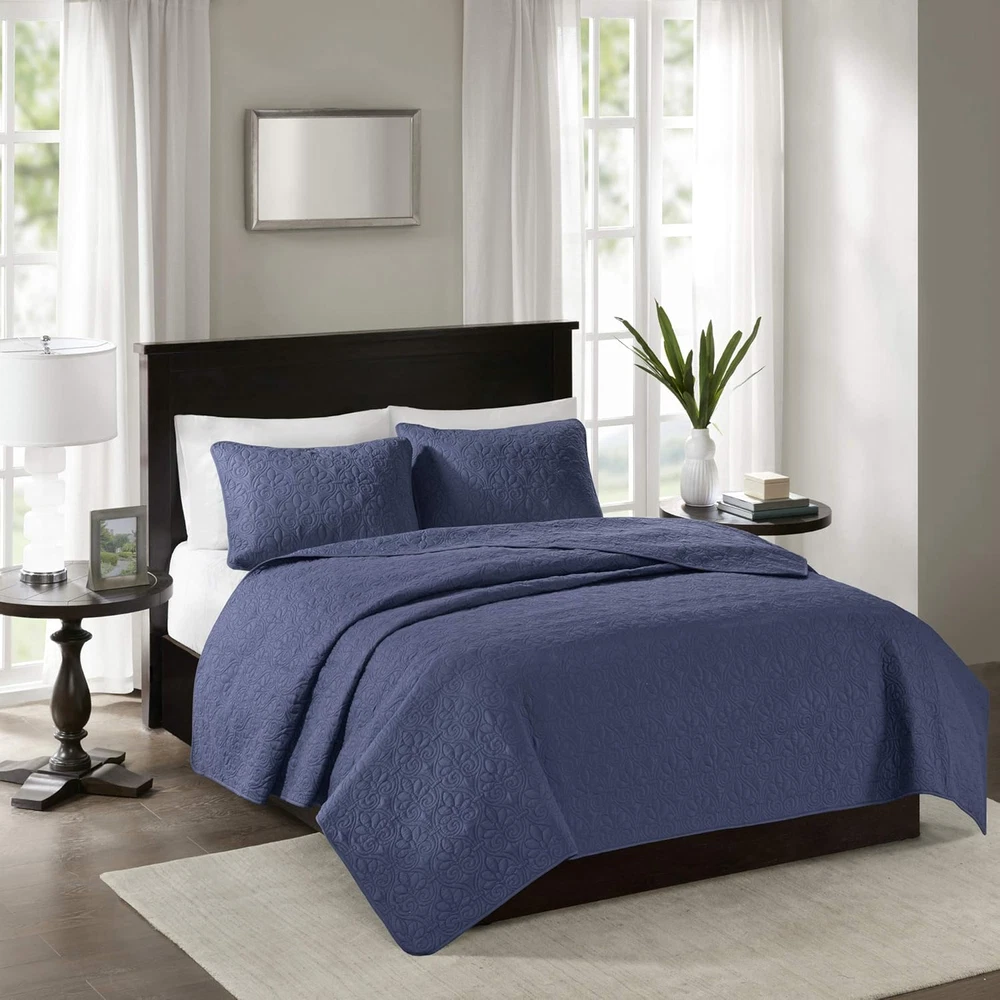 Store New Arrivals Add to Favorite View Feedback Contact Quebec Dusty Pale Navy 3-Piece Quilted King Coverlet Set—For King or Cal King Bed –Ideal for Warm Climate Room Décor or Add-On for Extra Warmth Description Item model number MP13-1687 Style Coverlet Assembly required No Pattern Damask Country of Origin China Theme Bohemian,Modern,Damask Import Imported Number of Pieces 3 Batteries required No Product Dimensions 104 x 94 x 0.25 inches Material Microfiber Seasons All, Summer Is Discontinued By Manufacturer No Included Components 1 Coverlet, 2 King Shams Item dimensions L x W x H 104 x 94 x 0.25 inches Fabric Type 100% Microfiber Face & Reverse, Filling: 90% Cotton, 10% Olefin Item Weight 7.83 pounds Color Navy Global Trade Identification Number 00675716644260 Product Care Instructions Machine Wash Size King/Cal King 100% Microfiber Face & Reverse, Filling: 90% Cotton, 10% Olefin Imported FEATURE Soft microfiber fabric in navy, all over floral pattern quilting Set includes 1 coverlet, 2 shams Face fabric - 100% polyester, 90/10 cotton/other fiber filling for optimal comfort Measurement 104-by-94 inch coverlet, 20-by-36 inch King sham Machine washable for easy care The Madison Park Quebec Reversible Coverlet Set offers a charming cottage-inspired update to your bedroom. The coverlet and shams (1 in Twin/TwinXL) flaunt a classic stitch pattern that creates a rich depth and texture on the face of the bedding set. Prewashed cotton filling provides added comfort and durability making it the perfect for use in the summer or as a layering piece in the winter. ABOUT US We offer the best prices around on high quality products. Our E-store includes media such as books, movies, music and games while offering electronics, toys, sporting apparel, clothing, tools, general home, garden items and more. SHIPPING We are always working hard to ensure your package arrives as soon as possible. Please understand that some factors like weather, high postal traffic, and the performance of shipping companies are outside of our control. We offer free shipping to the lower 48 states and ship within 2 business days of payment, usually sooner. We do not accept P.O. Boxes. Please provide a physical address. For shipping outside of the continental USA, we only use eBay's Global Shipping Program.The item is shipped to KY and then sent to the rest of the world. International customers are responsible for all duties and taxes. Continue to check out in order to calculate costs for shipping the item to your country. Messages regarding eBay's Global Shipping Program MUST be directed at eBay EXCLUSIVELY. RETURNS We offer a 30-Day Return Policy on items which you are not completely satisfied with. You have the option for a full-refund or an exchange of the item. No returns are available on items shipped outside of the USA. PAYMENT We accept PayPal. CONTACT US This page content is yet to come Please ad us to your favorite seller and visit again later Thank You CUSTOMER SATISFACTION We try our very best to make sure every customer is completely satisfied. If there's a problem, message us! We're happy to help. WE ACCEPT Copyright © 2021 AutoDS. | All Rights Reserved