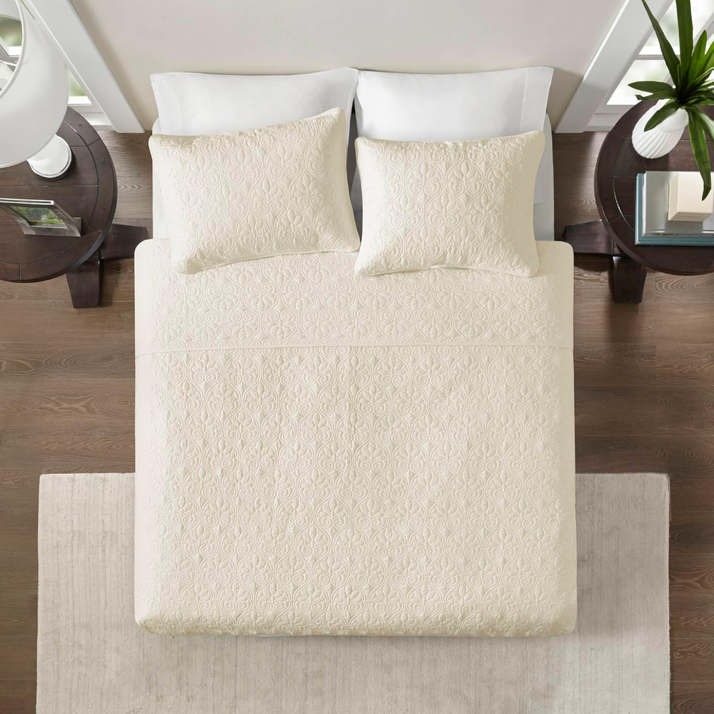 Menu Other Items Feedbacks About Us Contact Us Add To Favorites Quebec Quilt Set - Luxurious Damask Stitching Design, Cotton Filled Lightweight Coverlet Bedspread Bedding, Shams, King/Cal King(104"X94"), Cream 3 Piece 100% Microfiber Face & Reverse, Filling: 90% Cotton, 10% Olefin Imported The Madison Park Quebec Reversible Coverlet Set offers a charming cottage-inspired update to your bedroom. The coverlet and shams flaunt a classic stitch pattern that creates a rich depth and texture on the face of the bedding set perfect for use in the summer or as a layering piece in the winter. Set includes: 1 Coverlet: 104"W x 94"L, 2 King Shams: 20"W x 36"L Care instructions: Machine washable The Madison Park Quebec Reversible Coverlet Set offers a charming cottage-inspired update to your bedroom. The coverlet and shams (1 in Twin/TwinXL) flaunt a classic stitch pattern that creates a rich depth and texture on the face of the bedding set. Prewashed cotton filling provides added comfort and durability making it the perfect for use in the summer or as a layering piece in the winter. Item Specification Item model number MP13-150 Style Coverlet Assembly required No Pattern Solid Theme Bohemian,Modern,Damask Import Imported Number of Pieces 3 Batteries required No Product Dimensions 104 x 94 x 0.25 inches Material Polyester, Cotton Seasons All, Summer Is Discontinued By Manufacturer No Included Components 1 Coverlet, 2 King Shams Item dimensions L x W x H 104 x 94 x 0.25 inches Fabric Type 100% Microfiber Face & Reverse, Filling: 90% Cotton, 10% Olefin Item Weight 0.01 ounces Color Cream Global Trade Identification Number 00675716320751 Product Care Instructions Machine Wash Size King/Cal King Dimensions Shipping Returns Additional Info Product Dimensions: 94.0 inches x 104.0 inches x 0.25 inches. Weight: 0.01 oz Fast shipping is very important for us. Our standard shipping service is FREE. Your order will be shipped within 1-3 business days upon full payment received. Most items are delivered within 3-5 business days, however, please allow 3-10 business days. We are shipping only to USA. We only ship to the confirmed Paypal address. We reserve the right to cancel any order for any reason at any time. We are not responsible for undeliverable addresses. We offer a 30 day return policy from checkout winning date. Your satisfaction is guaranteed! If for any reason you are unhappy with your item, just return it within 30 days for a full refund, minus shipping cost. Please contact us prior to initiating a return so that we can issue you a refund authorization. Items defective upon receipt must be packaged in their retail packaging as if new and returned with a detailed description of the problem. Return shipping fees are not refundable. We reserve the right to decline any returns if the above guidelines are not followed. All of our items, unless otherwise stated, will only run on 120 volts. Please check to make sure your country complies with these specifications. If you have a problem or question regarding your transaction please contact us before leaving any type of feedback. We will work with you to resolve any problem you may have.