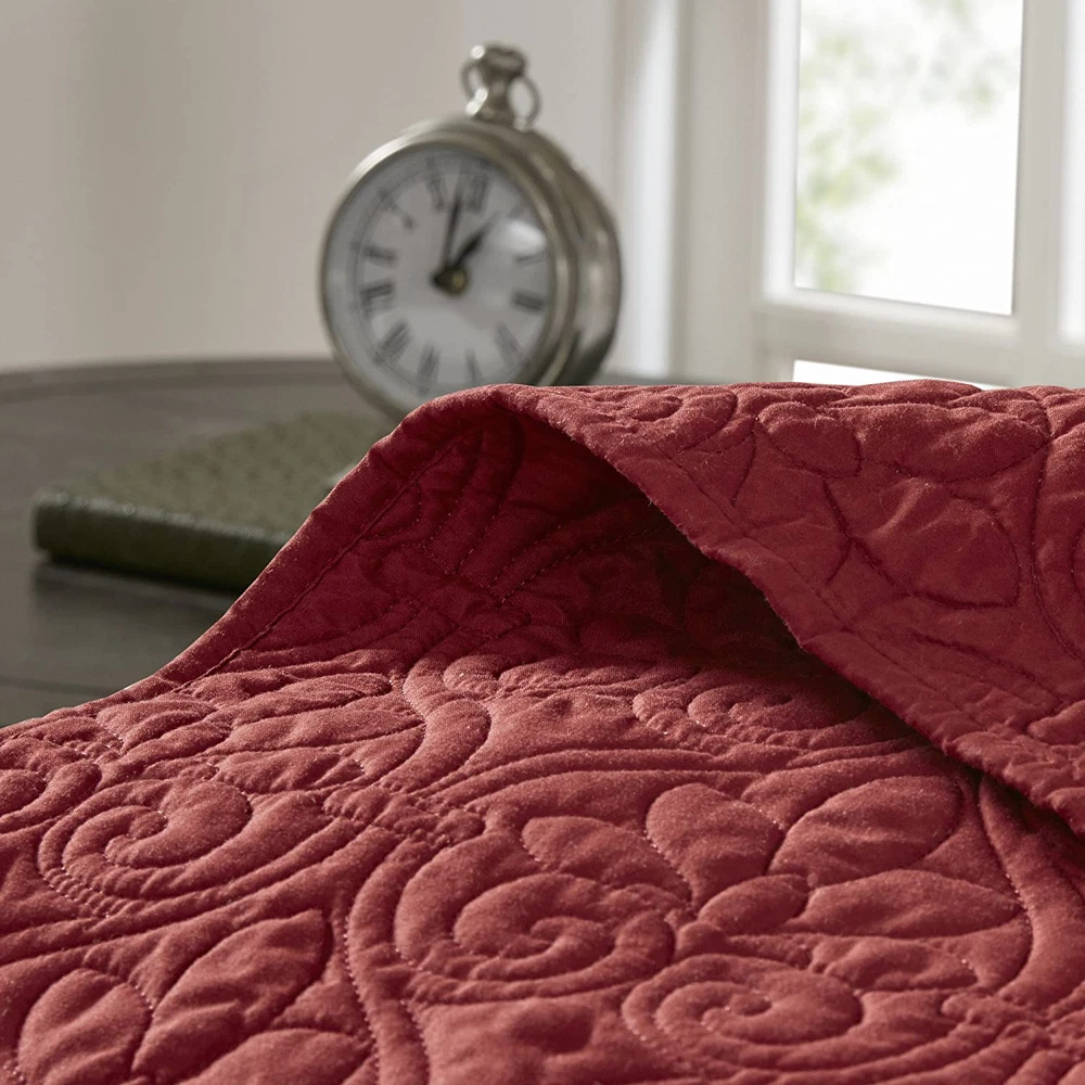 Store New Arrivals Add to Favorite View Feedback Contact Quebec Reversible Quilt Set Damask Design, Double Sided Stitching All Season, Lightweight Bedspread Bedding Set, Matching Sham, Red, Queen(102"X118") 3 Piece Description Item model number MP13-2993 Style Reversible Bedspread Set Assembly required No Pattern Damask Country of Origin China Theme Bohemian,Modern,Damask Number of Pieces 3 Specifications certified frustration-free Product Dimensions 118 x 102 x 0.25 inches Material Microfiber Seasons All, Summer Is Discontinued By Manufacturer No Included Components Quilt, Pillow Sham Item dimensions L x W x H 118 x 102 x 0.25 inches Fabric Type 100% Microfiber Face & Reverse, Filling: 90% Cotton, 10% Olefin Item Weight 9.78 pounds Color Red Global Trade Identification Number 00675716772017 Batteries required No Product Care Instructions Machine Wash Size Queen(102"x118") 100% Microfiber Face & Reverse, Filling: 90% Cotton, 10% Olefin Madison Park Quebec Reversible Bedspread Set is the perfect classic update to your bedroom décor. Bedspread dimension is oversized to drape better on high depth mattress The classic stitch pattern pairs easily with your existing decor and will sure to add a new decorative element to your bedroom Naturally lightweight fabric perfect for summer use or layer it on for cold weather Set includes: 1 Bedspread: 102"W x 118"L, 2 Standard shams: 20"W x 26"L Care instructions: machine washable The Madison Park Quebec Reversible Bedspread Set offers a charming cottage-inspired update to your bedroom. The reversible bedspread and shams (1 in Twin/TwinXL) flaunt a classic stitch pattern that creates a rich depth and texture on the face of the bedding set. Prewashed cotton filling provides added comfort and durability, while the oversized dimensions allow the bedspread to drape better. ABOUT US We offer the best prices around on high quality products. Our E-store includes media such as books, movies, music and games while offering electronics, toys, sporting apparel, clothing, tools, general home, garden items and more. SHIPPING We are always working hard to ensure your package arrives as soon as possible. Please understand that some factors like weather, high postal traffic, and the performance of shipping companies are outside of our control. We offer free shipping to the lower 48 states and ship within 2 business days of payment, usually sooner. We do not accept P.O. Boxes. Please provide a physical address. For shipping outside of the continental USA, we only use eBay's Global Shipping Program.The item is shipped to KY and then sent to the rest of the world. International customers are responsible for all duties and taxes. Continue to check out in order to calculate costs for shipping the item to your country. Messages regarding eBay's Global Shipping Program MUST be directed at eBay EXCLUSIVELY. RETURNS We offer a 30-Day Return Policy on items which you are not completely satisfied with. You have the option for a full-refund or an exchange of the item. No returns are available on items shipped outside of the USA. PAYMENT We accept PayPal. CONTACT US This page content is yet to come Please ad us to your favorite seller and visit again later Thank You CUSTOMER SATISFACTION We try our very best to make sure every customer is completely satisfied. If there's a problem, message us! We're happy to help. WE ACCEPT Copyright © 2021 AutoDS. | All Rights Reserved