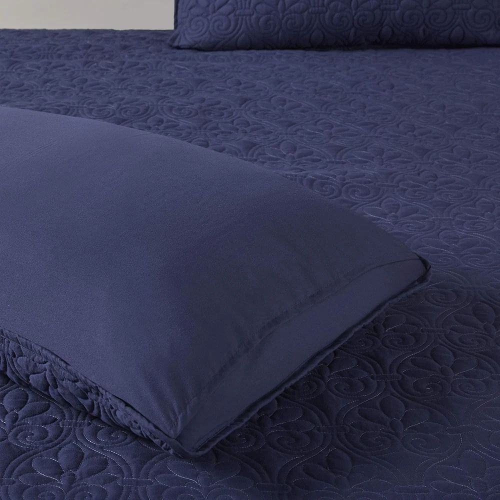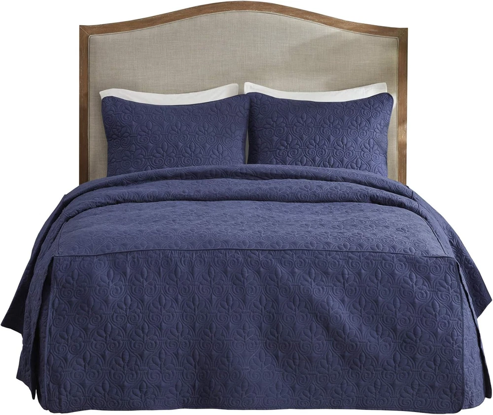 Store New Arrivals Add to Favorite View Feedback Contact Quebec Split Corner Quilted Bedspread Classic Traditional Design All Season, Lightweight, Bedding Set, Matching Shams, Queen(60" X80+24D), Damask Quilted Navy 3 Piece Description Item model number MP13-6480 Global Trade Identification Number 00086569256096 Style Fitted Bedspread Assembly required No Color Navy Pattern Damask Fabric Type 100% Microfiber Face & Reverse, Filling: 90% Cotton, 10% Olefin Material Microfiber Country of Origin China Item dimensions L x W x H 80 x 60 x 0.25 inches Item Weight 6.54 pounds Batteries required No Theme Bohemian,Modern,Damask Size Queen Seasons All, Summer Number of Pieces 3 Product Dimensions 80 x 60 x 0.25 inches Product Care Instructions Machine Wash Included Components 1 Bedspread, 2 Standard Shams 100% Microfiber Face & Reverse, Filling: 90% Cotton, 10% Olefin The Madison Park Quebec 3 Piece Split Corner Pleated Quilted Bedspread offers a chic classic update to your bedroom décor. Solid rich color of sophisticated double sided quilting bohemian pattern complements the lightweight design and luxurious bedding feel. The quilted styling showcase classic French design of quilted box sewing with 24 inch drop on the sides with split corners accents Set includes: 1 Bedspread:60"W x 80"L + 24"D, 2 Standard Shams:20"W x 26"L Care Instructions: Machine washable The Madison Park Quebec 3 Piece Quilted Bedspread Set offers a charming cottage-inspired update to your bedroom. The open split-corner bedspread and shams flaunt a classic stitch pattern that creates a rich depth and texture on the face of the bedding set. All-over quilted box sewing keeps the filling secure, while the 24-inch drop sides create a clean draped look with pleated corners. It is available in four different colors including a soft cream, dark grey, rich taupe, and vibrant navy. ABOUT US We offer the best prices around on high quality products. Our E-store includes media such as books, movies, music and games while offering electronics, toys, sporting apparel, clothing, tools, general home, garden items and more. SHIPPING We are always working hard to ensure your package arrives as soon as possible. Please understand that some factors like weather, high postal traffic, and the performance of shipping companies are outside of our control. We offer free shipping to the lower 48 states and ship within 2 business days of payment, usually sooner. We do not accept P.O. Boxes. Please provide a physical address. For shipping outside of the continental USA, we only use eBay's Global Shipping Program.The item is shipped to KY and then sent to the rest of the world. International customers are responsible for all duties and taxes. Continue to check out in order to calculate costs for shipping the item to your country. Messages regarding eBay's Global Shipping Program MUST be directed at eBay EXCLUSIVELY. RETURNS We offer a 30-Day Return Policy on items which you are not completely satisfied with. You have the option for a full-refund or an exchange of the item. No returns are available on items shipped outside of the USA. PAYMENT We accept PayPal. CONTACT US This page content is yet to come Please ad us to your favorite seller and visit again later Thank You CUSTOMER SATISFACTION We try our very best to make sure every customer is completely satisfied. If there's a problem, message us! We're happy to help.
