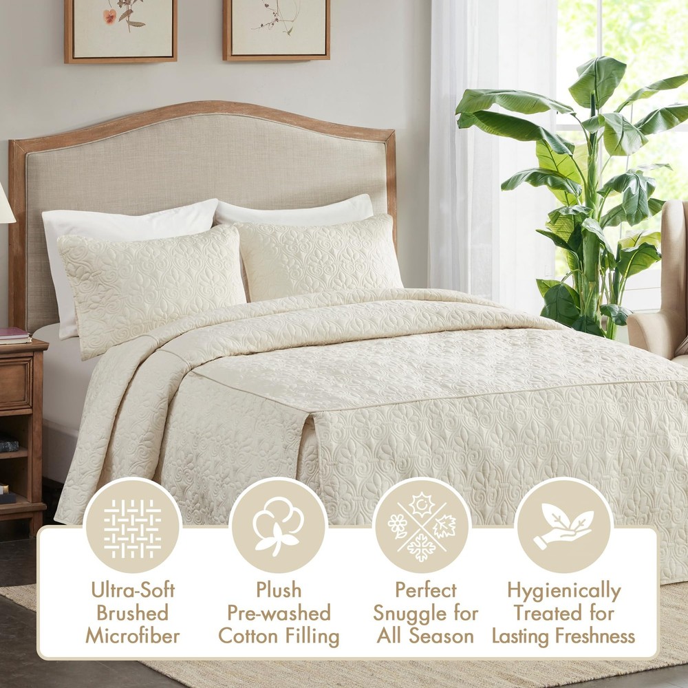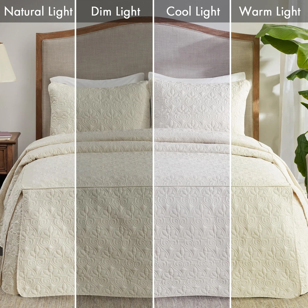 Absolutely love this bedspread! The rich color and double-sided quilting give my bedroom an elegant yet cozy vibe. The lightweight design is perfect for all seasons, and the split corners add a stylish touch. The included shams complete the look beautifully. Super easy to care for—just toss it in the washer! Highly recommend for a chic, traditional upgrade.