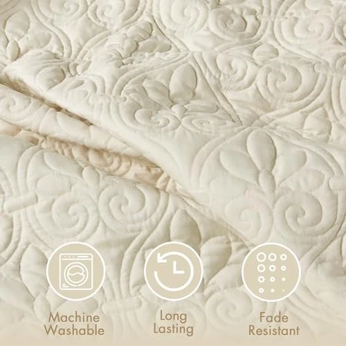 This bedspread set is absolutely stunning! The soft, luxurious fabric feels amazing, and the elegant ivory color adds a touch of sophistication to my bedroom. The fit is perfect, and the three-piece set makes styling effortless. Highly recommend for a cozy yet chic upgrade!