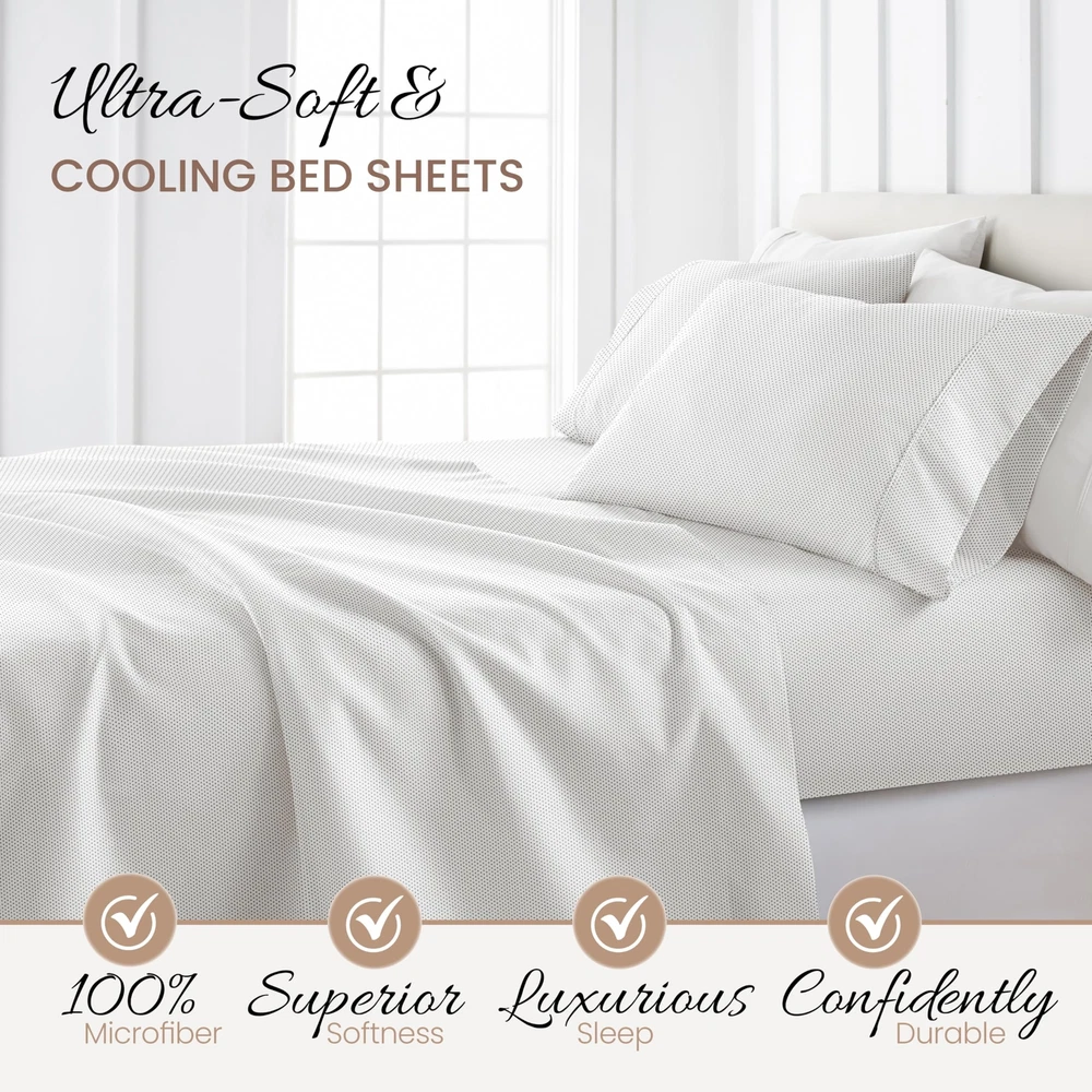 ✨ 4 Piece Queen Bedding Sheet Set (Gray Stippled) - Sleep Better Than Ever with These Ultra-Soft & Cooling Bed Sheets for Your Queen Size Bed - Deep Pocket Fits 16" Mattress ✨ 🔍 Product Overview iEnjoy Home is designed with your comfort in mind. Made of the finest double-brushed microfiber yarns creating a new standard in softness and breathability. Our premium yarns are two times more durable than cotton, completely wrinkle-free, and perfect for all seasons. 🔥 Key Features LUXURY AND COMFORT-You'll be amazed at how silky soft, and comfortable these luxurious bed sheets are! iEnjoy Home luxury sheet sets are designer sheets at an unbelievable price. The perfect fit for any room in your house - bedroom, guest room, kids room, dorm room, RV, vacation home. Great gift idea for men and women, Moms and Dads, Valentine's - Mother's - Father's Day, Birthday, and Christmas. Made of the finest double-brushed microfiber yarns creating a new standard in softness and breathability More durable than cotton, completely wrinkle-free and perfect for all seasons TREMENDOUS SELECTION - Colors include Aqua, Black, Burgundy, Chocolate, Cream, Gold, Gray, Ivory, Light Gray, Navy, Purple, Sage, Taupe, and White. Patterns include Arrow, Blossoms, Burst of Vines, Coarse Paisley, Houndstooth, Honeycomb, Make A Wish, Mercedes, Polkadot, Puffed Chevron, Quatrefoil, Ribbon, Scallops, Soft Floral, Stippled, Thatch, Vines, and Wheatfield. 📦 Shipping Information We ship to the address provided on eBay. Please verify your address before purchasing. Orders will be processed within 1-2 business days and shipped promptly. Typical delivery time is 3-7 business days. If there are any issues with shipping, please contact us immediately. 🔄 Return Policy Returns are accepted within 30 days of purchase. Please ensure items are returned in their original packaging and condition. 💳 Payment Methods We accept all major payment methods including PayPal and credit cards. 📞 Contact Us If you need assistance, feel free to reach out via eBay messages for a prompt response!