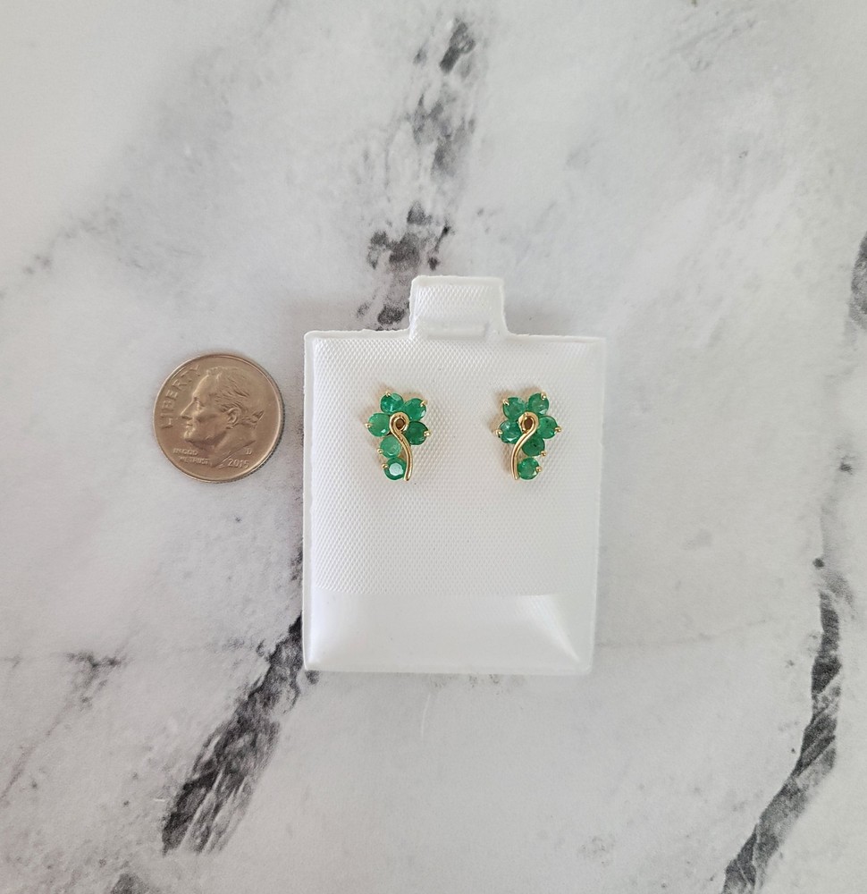 ♥ Product Summary ♥ Main Stone: Emerald Metal Choice: 14K Yellow Gold Stone Cut: Round Dimensions: 11mm x 9mm Closure: Butterfly Diamonds & Gemstones are Natural. Not enhanced, simulated or lab-created. SHIPPING We ship all items within 1-2 business days after payment. Deliver anywhere in US - USPS First Class Mail - USPS Priority Mail - FedEx Ground - UPS Next Day Air available International Delivery – FedEx International Express RETURNS/EXCHANGES We want you to be completely satisfied with your purchase. If for any reason you are not satisfied we will gladly accept returns and exchanges within 30 days after delivery.