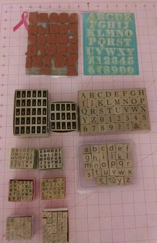 Buy More, Save More! Your Choice of Rare, Retired, Clear, Cling Rubber and Foam Stamps. Most are gently or hardly used. Some are new (noted in parenthesis by items listed below). Your Choice of: Image Tree Alphabet and Matching Numbers Set (Barely used) Roman Alphabet and Matching Numbers Set (NEW) Courier New Alphabet Set and Bonus 2 Lumi Flower Stamps Studio G, Hampton Arts, Series 1, Art Deco Alphabet (NEW, Sealed) Studio G, Hampton Arts, Series 3, Script Alphabet Studio G, Hampton Arts, Series 3, Roman Alphabet Studio G, Hampton Arts, Series 4, Round Block Alphabet (New, Sealed) Studio G, Hampton Arts, Series 4, Courier New Alphabet (New, Sealed) Fontwerks “mimimounts” Cezanne Alphabet *Rare* Fontwerks Large Grunge Cling Rubber Alphabet *Rare* Martha Stewart Ornamental Bodoni Clear Alphabet Stamps K&Company Letterpress Alphabet and Numbers Clear Stamp Set Inkadinkado Wrought Iron Alphabet and Numbers Clear Stamp Set Scrappy Cat Upper and Lowercase Clear Stamp Set- Script Scrappy Cat Upper and Lowercase Clear Stamp Set– Typeset Scrappy Cat Upper and Lowercase Clear Stamp Set– Skinny Lost Coast Designs Large Old Typewriter Cling Rubber Stamp Set Old English Alphabet Cling Rubber Stamp Set Antique Small Upper & Lowercase + Numbers Cling Rubber Stamp Set TPC Courier New Capitols, #’s & Punctuation Cling Rubber Stamp Set Brush Script Upper, Lower Alphabet & #s Foam Stamp Set Use for all your scrapbooking, card making, journaling, mixed media, altered arts, jewelry making, gift wrapping, home or party decor and paper crafting. From a clean, smoke free and pet free home. Check out my other listings. Tons of crafting items, many new or barely used. Will combine shipping on all purchases made within 3 days. To get combined shipping: buy your items from my listings, do not yet pay , request an invoice once you finished shopping and then pay the new total after I send you the invoice. Please ask any questions . I pride myself on excellent customer service. If you are not totally satisfied with your purchase, please let me know prior to leaving feedback. Buyer's remorse returns not accepted, so please read item description carefully, review photos and ask any questions prior to purchase. Anyone attempting to commit fraud will be reported. Thanks for Looking, Stay Safe and Happy Shopping!