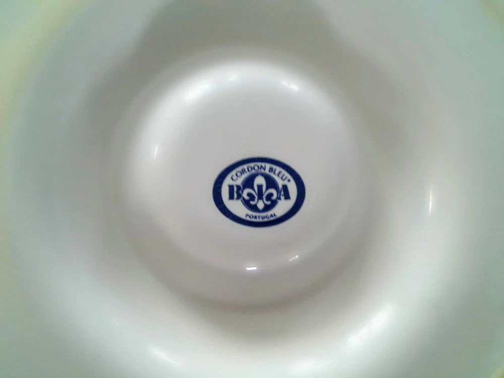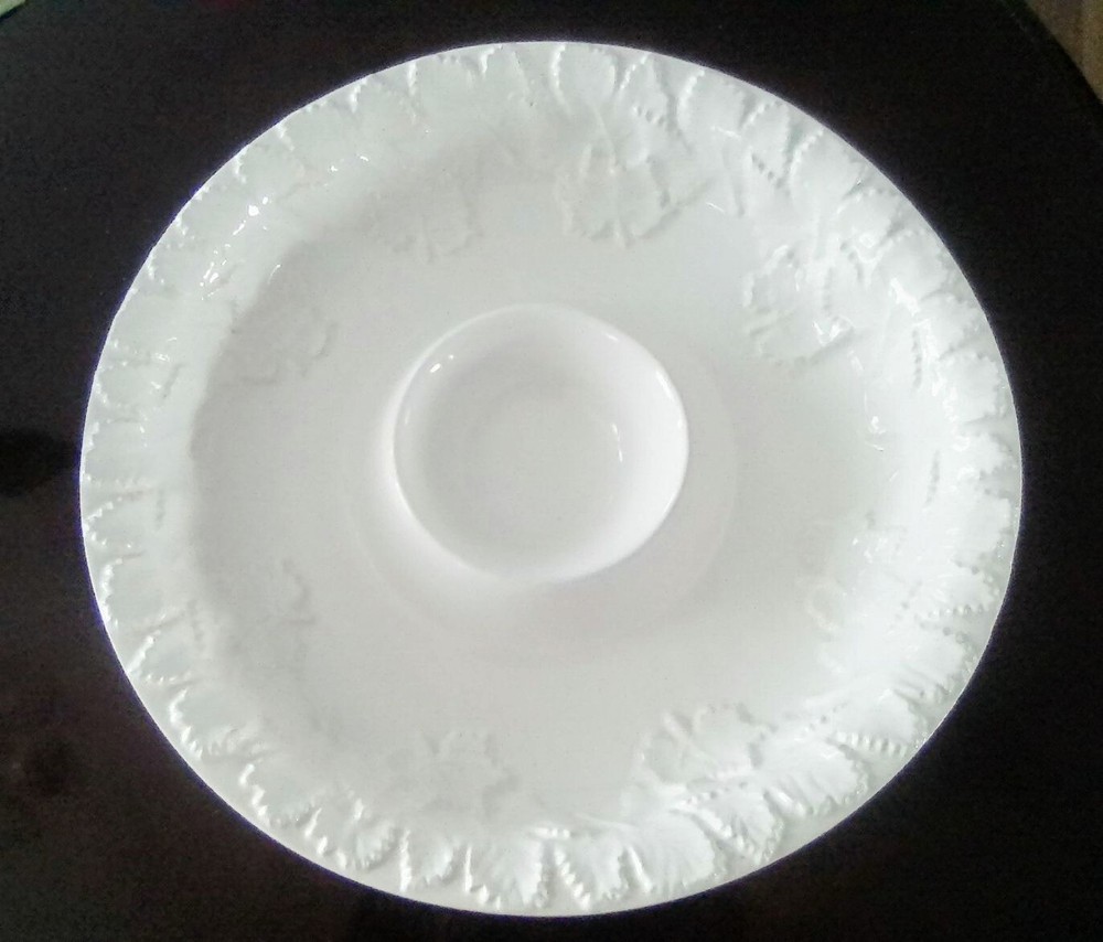 Vintage BIA Cordon Bleu Portugal Large Round Chip or Vegetable Dip Bowl. Embossed with leaves around the rim. Very pretty and in excellent condition with no chips or cracks. 13-3/8"D x 2-1/2"H....
