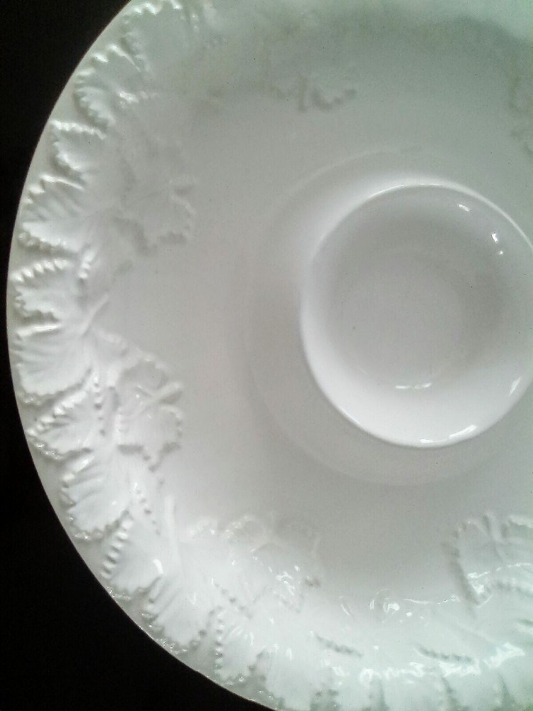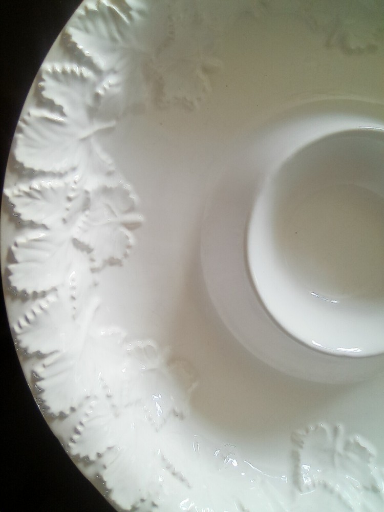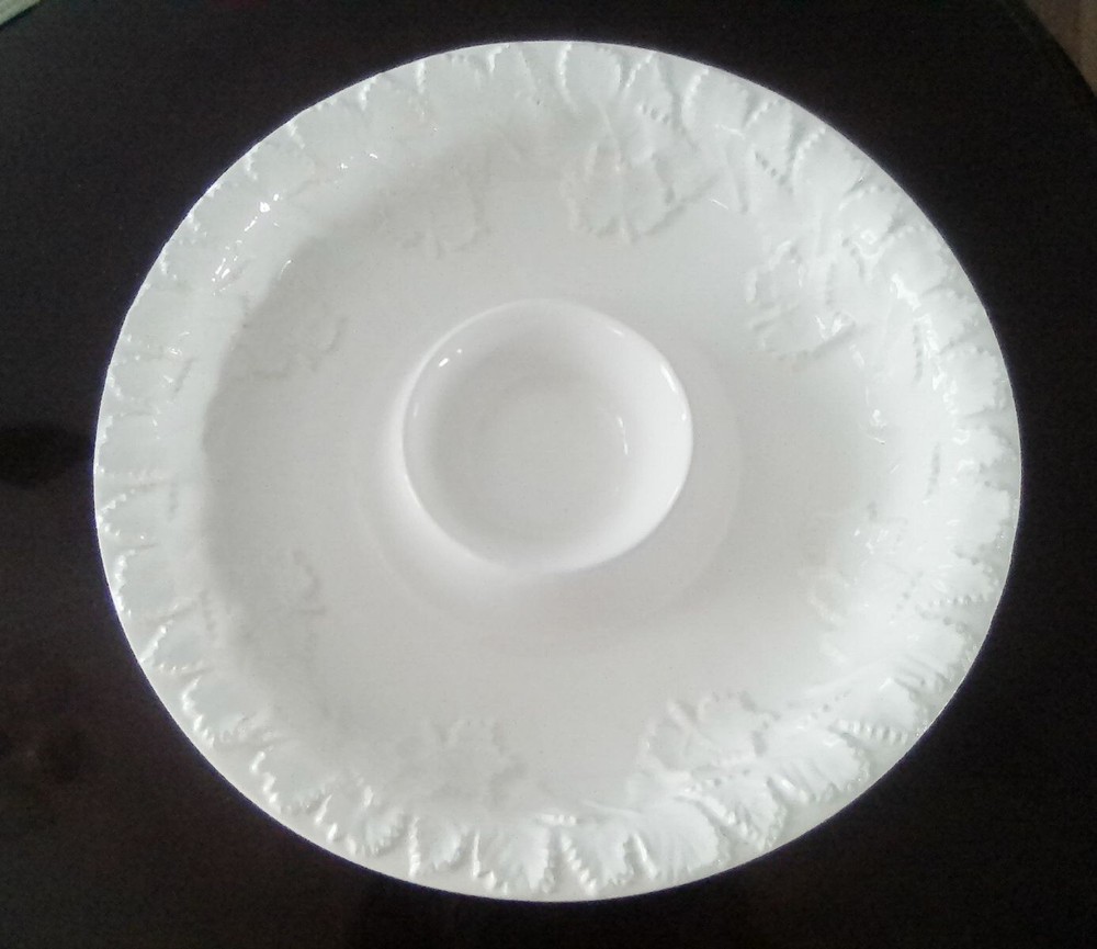 Vintage BIA Cordon Bleu Portugal Large Round Chip or Vegetable Dip Bowl. Embossed with leaves around the rim. Very pretty and in excellent condition with no chips or cracks. 13-3/8"D x 2-1/2"H.