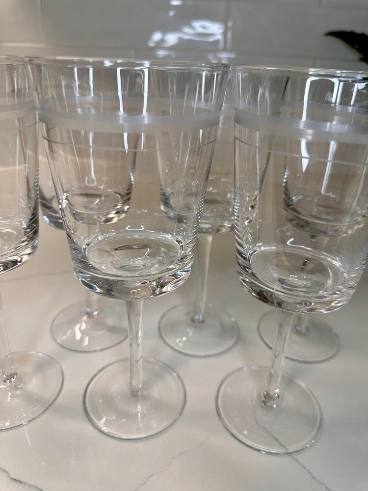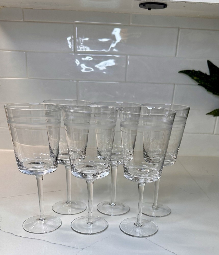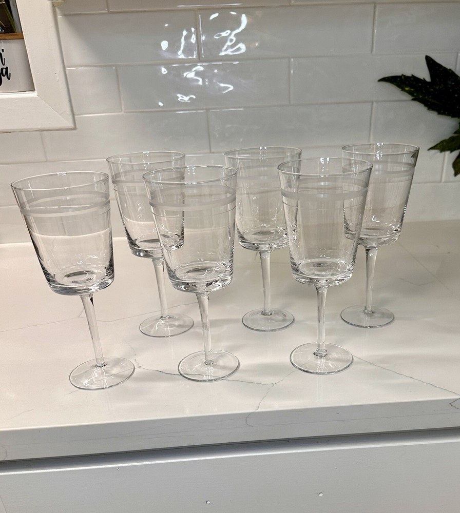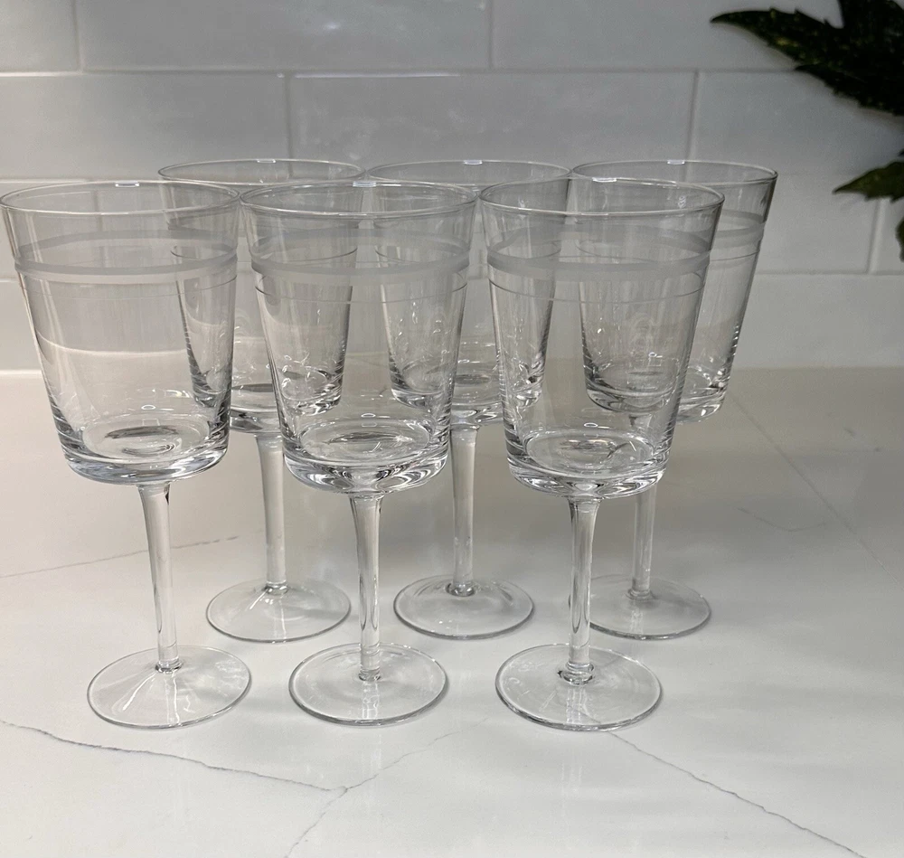 Extremely RARE and HARD TO FIND ✨ NEW (no signs of ever being used) in original box. Pristine and perfect condition. ***This is 1 of 2 sets I currently have available. Ask me about discounts to order both sets while the second one is still available!!*** This is a beautiful(!!) set of 6 etched CRYSTAL stemmed wine glasses from Pottery Barn. Create a sophisticated and elegant table setting with these gorgeous glasses! Thank you shopping and supporting small business!