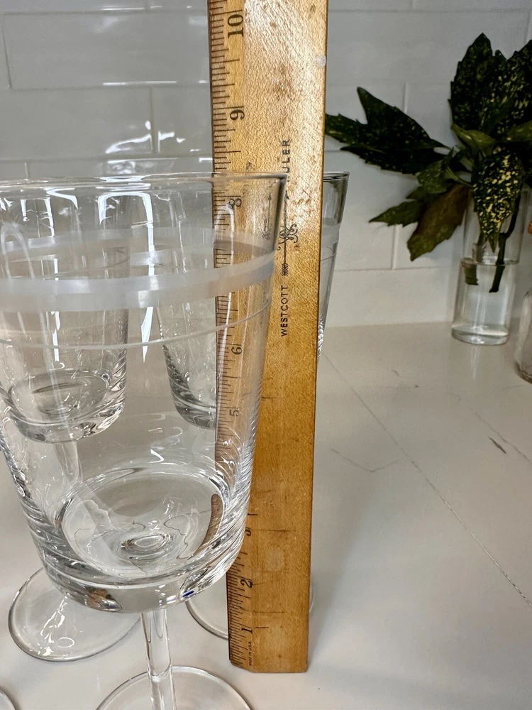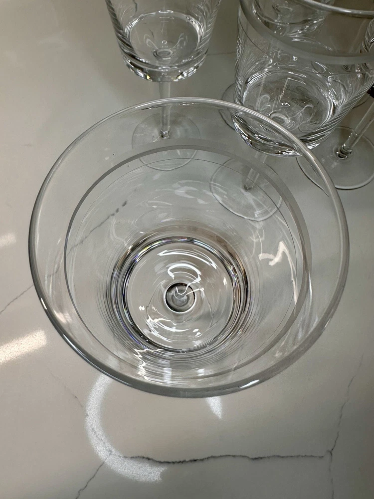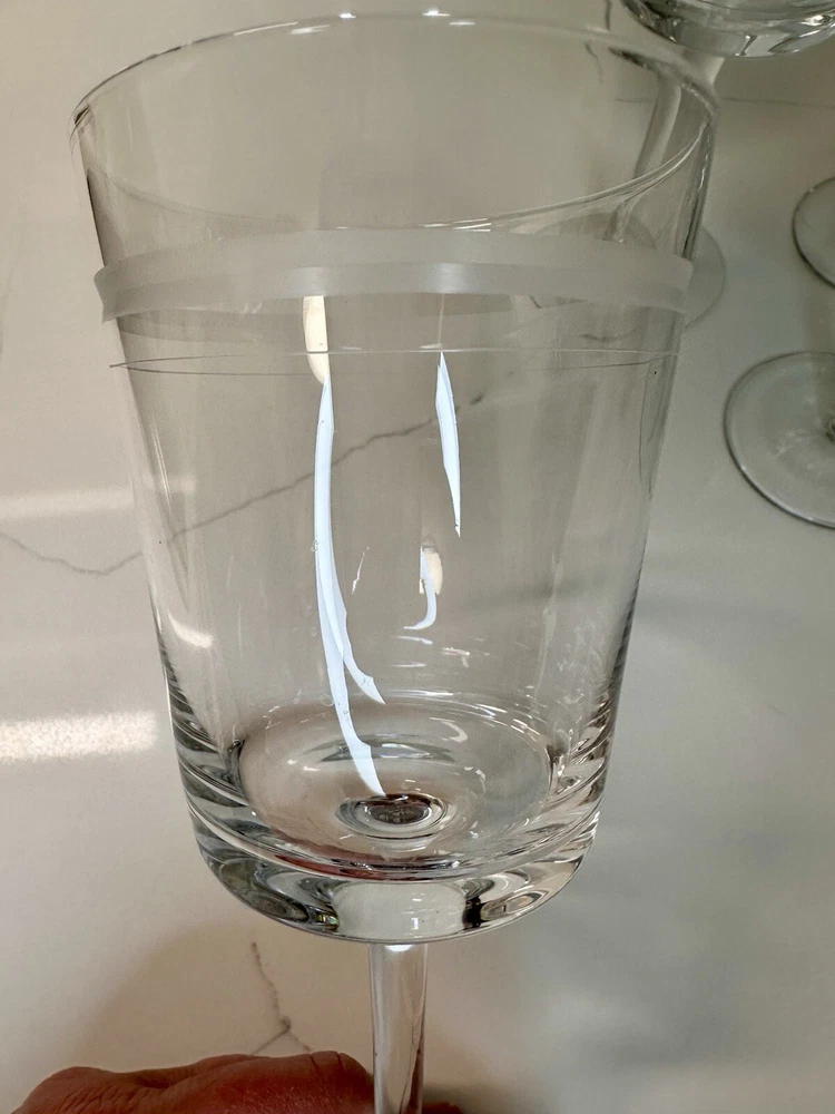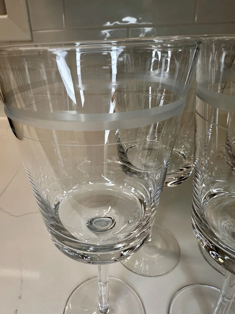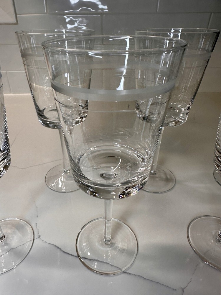 Extremely RARE and HARD TO FIND ✨ NEW (no signs of ever being used) in original box. Pristine and perfect condition. ***This is 1 of 2 sets I currently have available. Ask me about discounts to order both sets while the second one is still available!!*** This is a beautiful(!!) set of 6 etched CRYSTAL stemmed wine glasses from Pottery Barn. Create a sophisticated and elegant table setting with these gorgeous glasses! Thank you shopping and supporting small business!