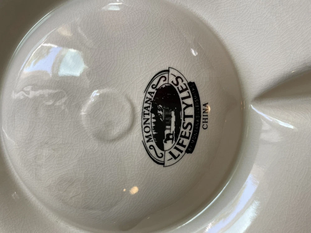 Add a touch of western charm to your dinnerware collection with this RARE Montana Lifestyles Large Divided Chip & Dip Dish Plate/Tray Bowl featuring a beautiful horse pattern. Perfect for all occasions, this ceramic dipping bowl set is ideal for entertaining guests or a cozy night in. The ivory color adds a classic and elegant touch to any table setting. The dish is spacious and divided, making it perfect for holding chips, dips, and other appetizers. Get ready to impress your guests with this unique and stylish addition to your home!