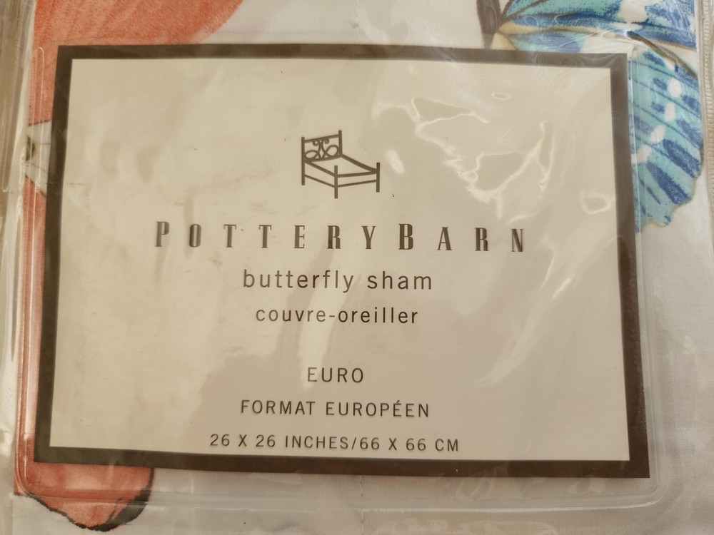 Selling a super rare extremely hard to find brand new set of 2 Pottery Barn butterfly print EURO shams. These are brand new in packaging still! ONLY selling as a set of 2 as these are so hard to find anymore and brand new. PRICE IS FOR 2 SHAMS! come from a pet and smoke free home I have LOTS of PB treasures, so please check out my other listings or inquire.