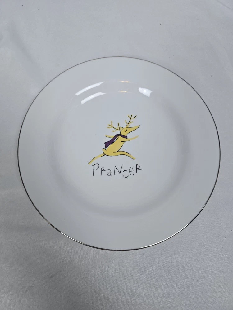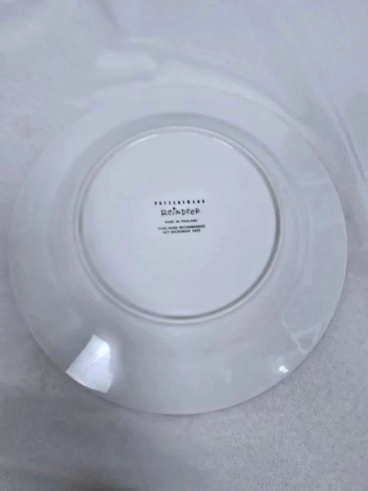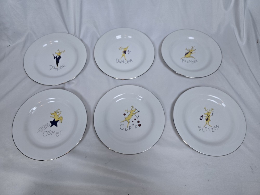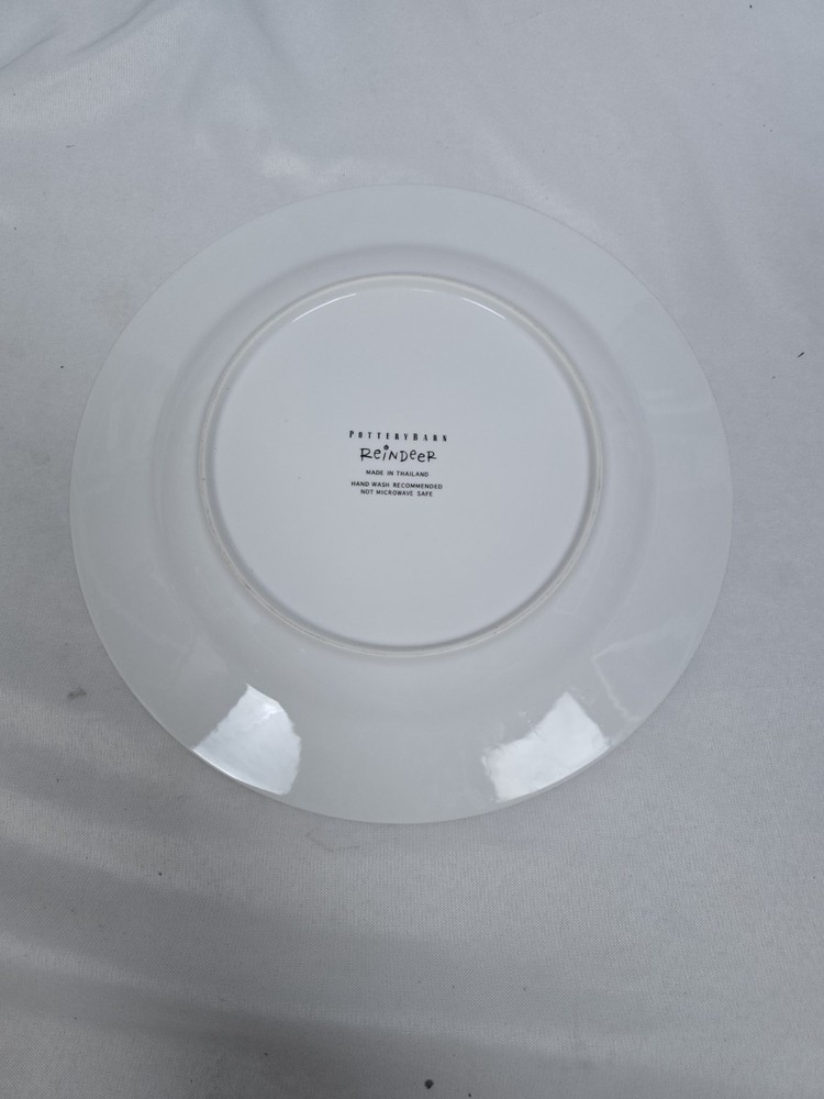 Lot of 6 rare retired out of production Pottery Barn Reindeer 11" dinner plates. Includes Dasher, Dancer, Prancer, Comet, Cupid, and Blitzen. These plates are all Made in Thailand. Plates are all in excellent condition with minimal minor surface scratches and minor wear to the silver rim. I'd rate them a 9 out of 10. Please view all photos for more details.