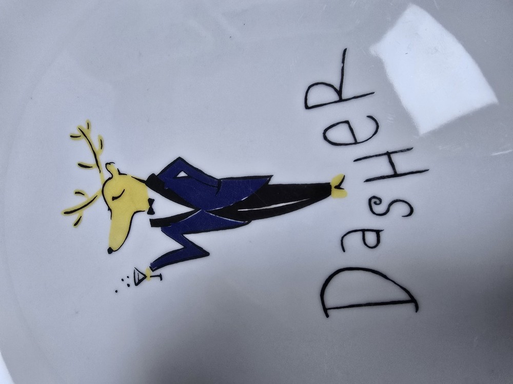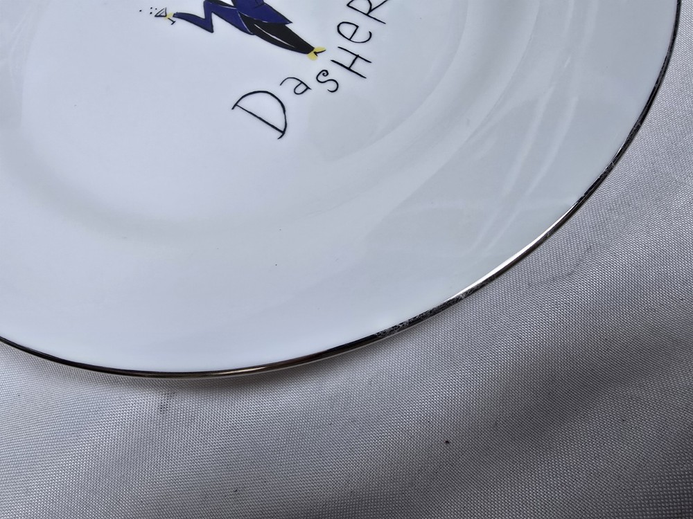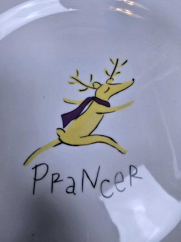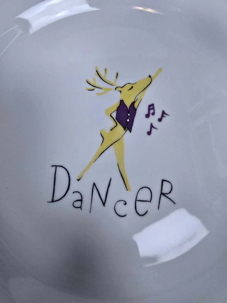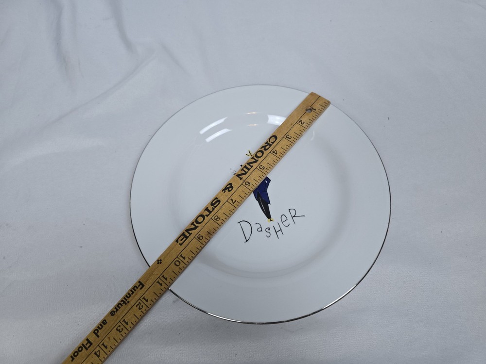Lot of 6 rare retired out of production Pottery Barn Reindeer 11" dinner plates. Includes Dasher, Dancer, Prancer, Comet, Cupid, and Blitzen. These plates are all Made in Thailand. Plates are all in excellent condition with minimal minor surface scratches and minor wear to the silver rim. I'd rate them a 9 out of 10. Please view all photos for more details.