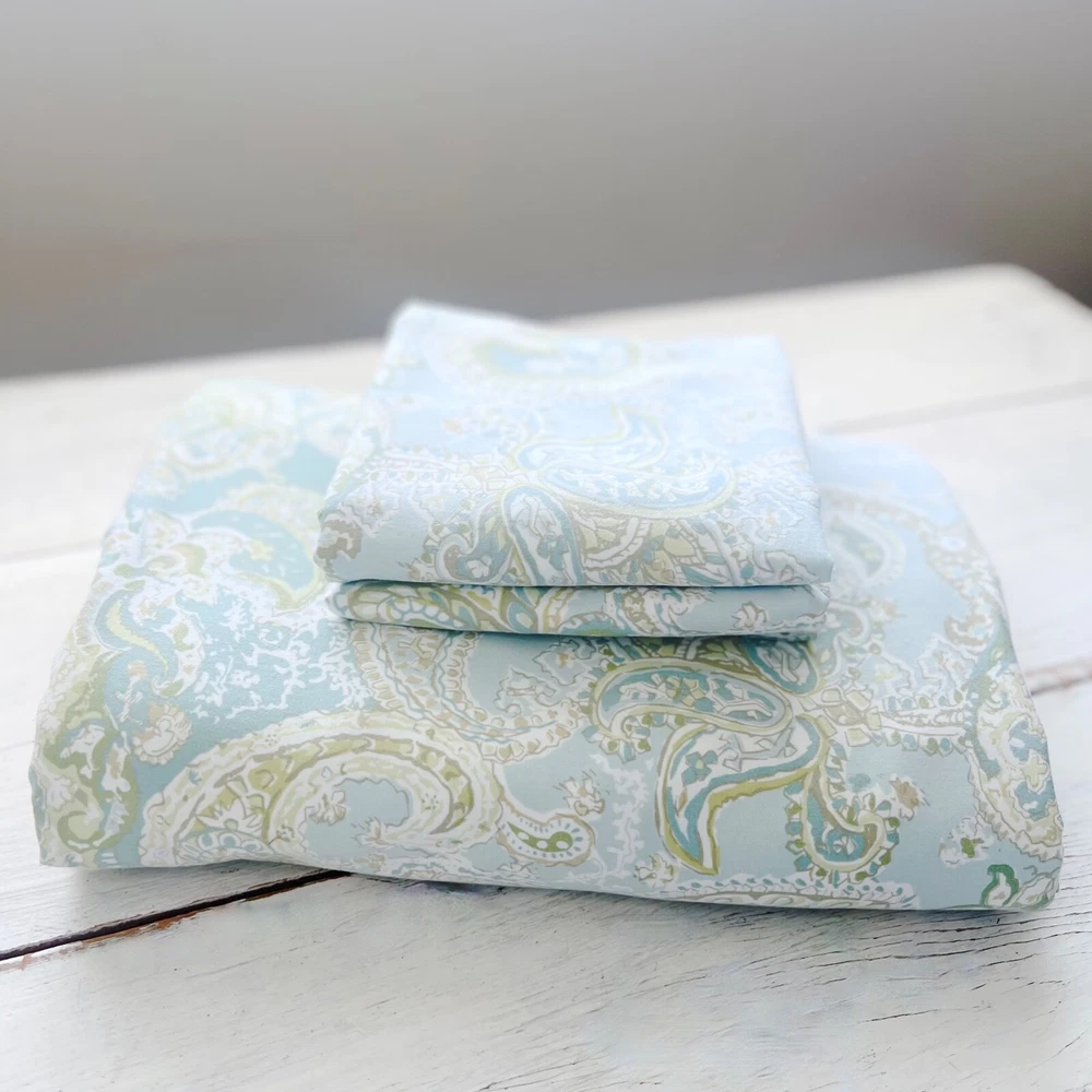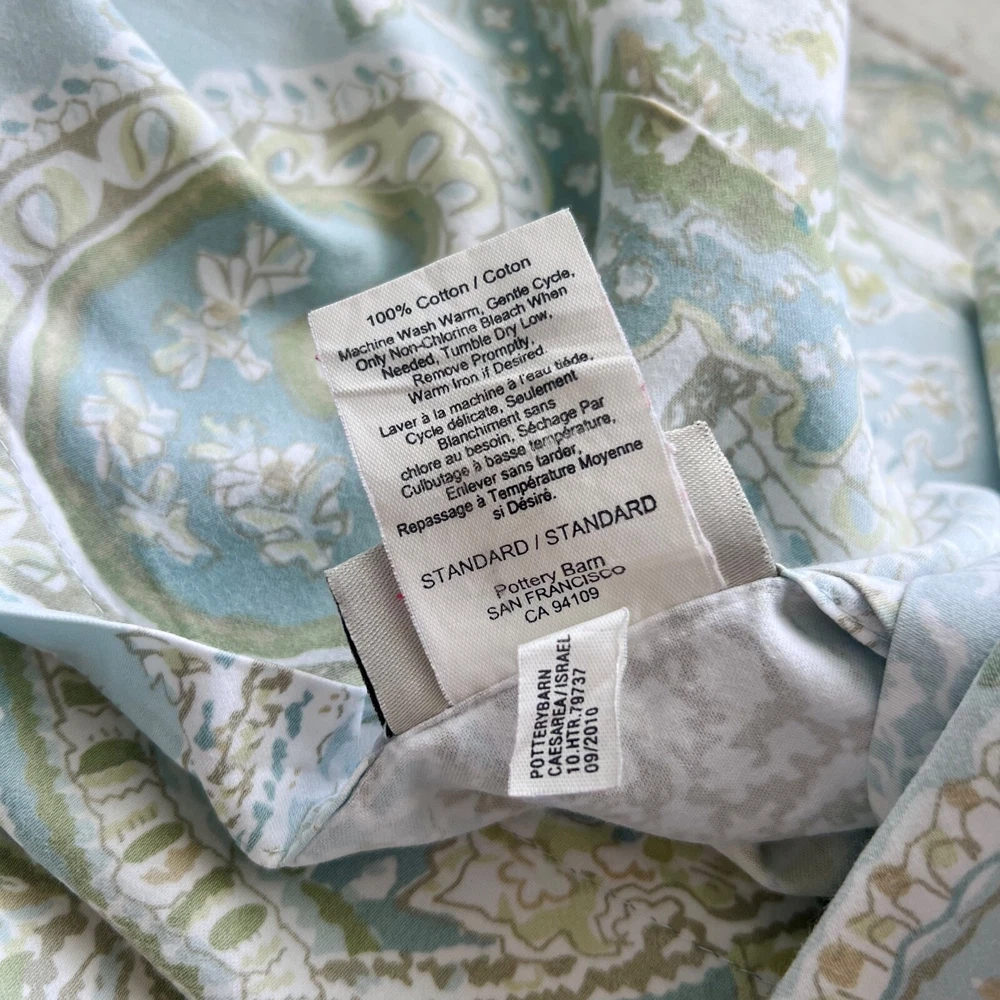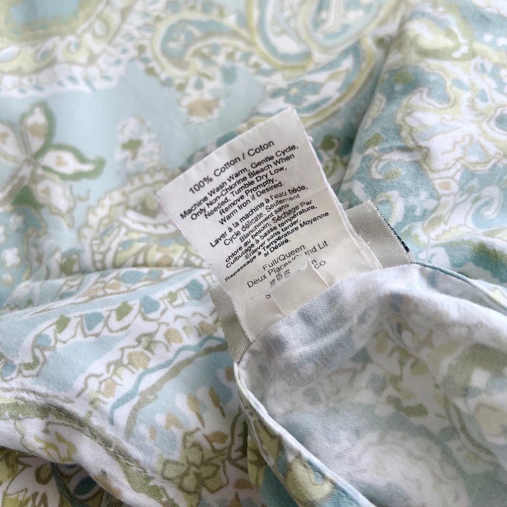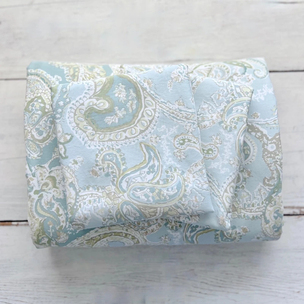 RARE (3 piece Set) Pottery Barn Sienna Paisley Duvet Cover & 2 Shams Color: Blue / Green SIZE: Duvet Cover : FULL / QUEEN Pillow Shams: STANDARD (20x26") Gently pre-owned condition. Washed pressed and ready to use. Will be packaged with care and shipped via USPS. All items are guaranteed to be as described. They will arrive fresh and ready for use. Please see our feedback for experience of others. Photos are of actual item you will receive w/ exception of a stock photo or two from an online catalog. If you have any questions before the sale, please reach out for clarification. Message me with any questions!