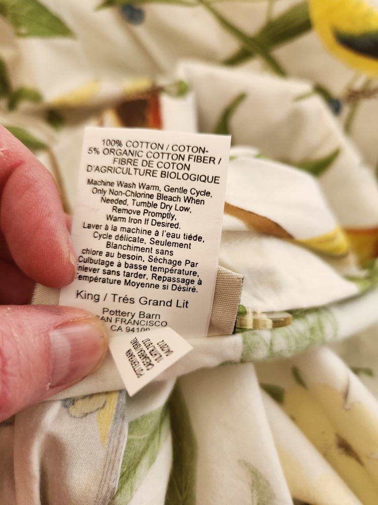 selling a barely used Pottery barn Spring Sparrow King / cal King duvet with 3 matching 26" euro shams. Items are used, but to be honest look brand new. Gorgeous set. comes from a pet and smoke free home I have LOTS of PB treasures, so please check out my other listings or inquire.