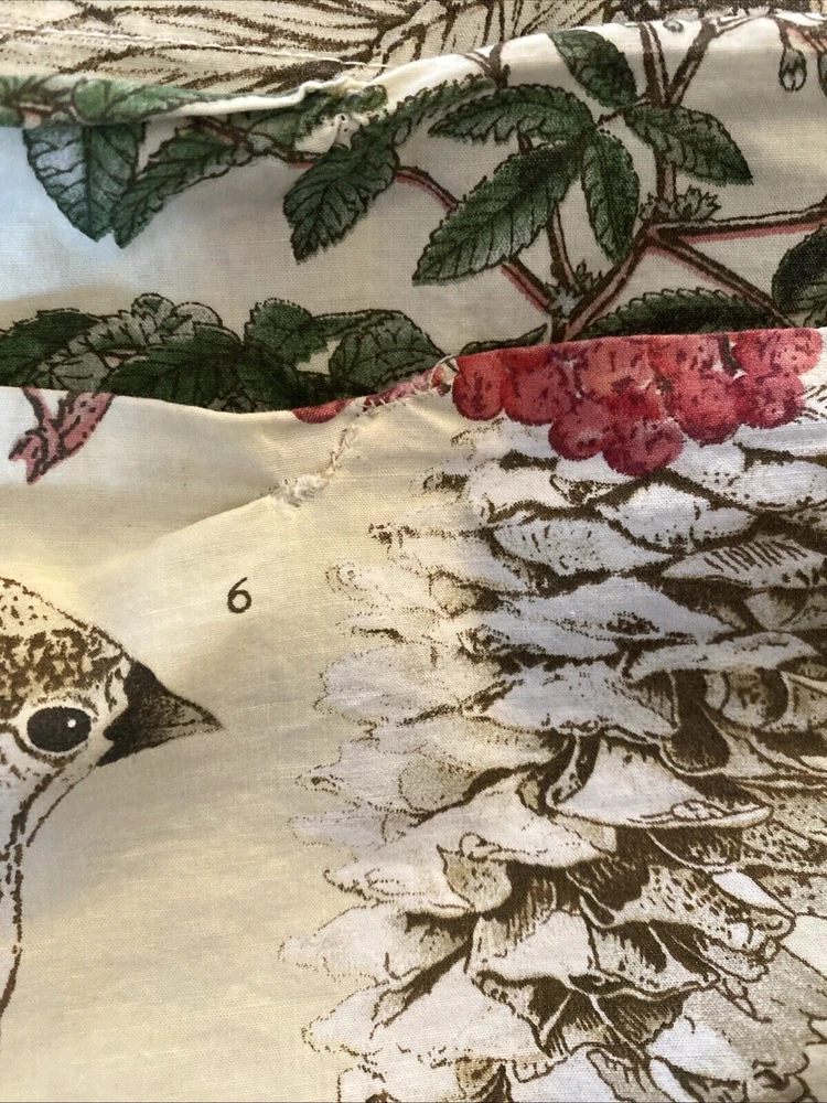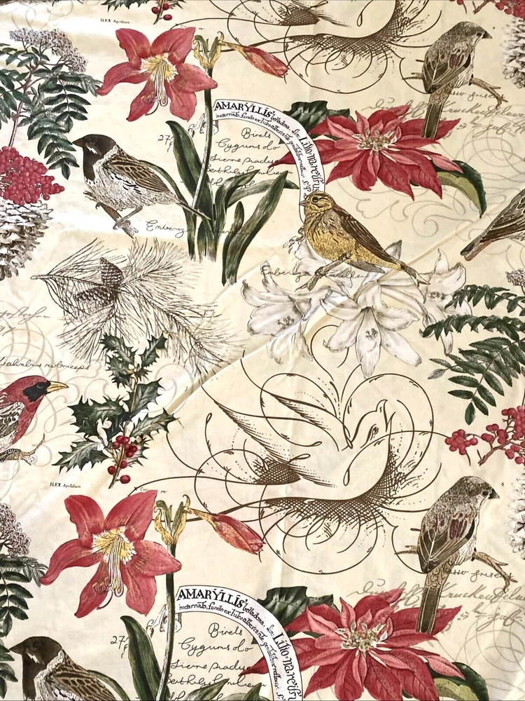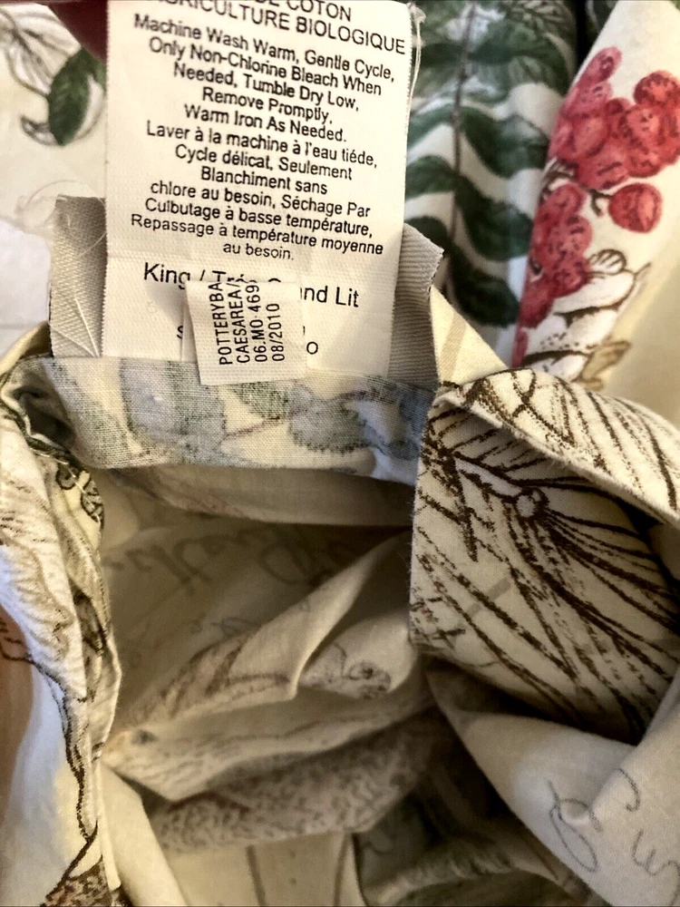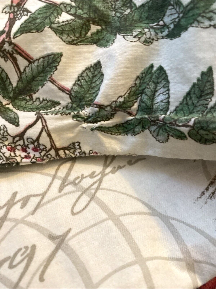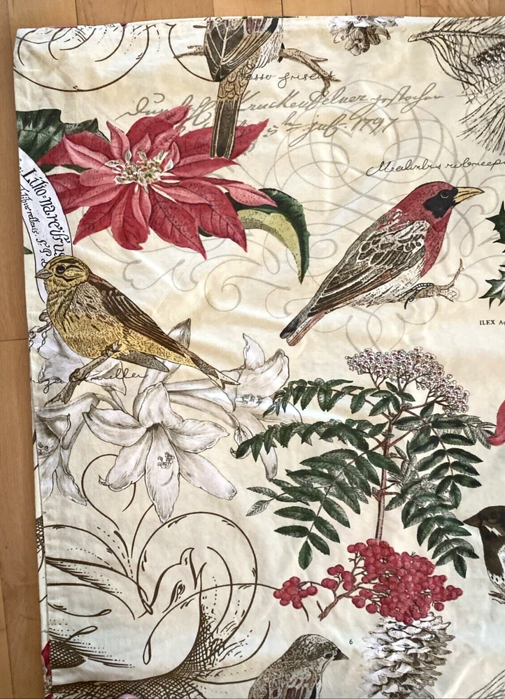 POTTERY BARN WINTER BIRDS AMARYLLIS & BERRIES KING SIZE COTTON DUVET COVER Beautiful, retired design with Winter birds, pine and pinecones, and Amaryllis, with cursive script. Button closure. In good, clean condition. Two small repairs at one end as seen in last two photos. Measures about 105" wide, and 87.5" long. You’ll Want to Know… Before You Bid or Buy … If you’d like more information – measurements, photos, etc. – I’m happy to provide it! My products come from a Smoke-free, Pet-free home. I Ship Fast, usually within 24 hours. After Your Purchase… PLEASE CONTACT ME DIRECTLY if you have Questions/Concerns. I want you to be a satisfied Ebay Customer! Check out my Positive Feedback from over 5100 customers! Returns Accepted… I accept Returns; Buyer pays return shipping cost. I’ll process your refund after verifying it is in same condition as when purchased. Please note. .. Additional shipping may apply to Alaska, Hawaii, and other US territories. Please wait to pay until you receive a revised invoice. Please note that we make every effort to accurately describe the sizes of every item we have up for sale. Sizes can vary depending on the style of the item, the manufacturer and the way the designer intended the item to fit. It is very common for the same person to wear different sizes from different designers and sometimes different sizes from the same designer. If we believe that the marked size differs from the measured size, it is explained in the listing. For example, we may say that something is slim fitting, full cut, or was taken in or let out from its original size. Please be sure to review the measurements provided in the listing, and bear in mind that measurements can vary slightly, depending on how the fabric is held. We make no guarantees that the item you are purchasing will fit you properly. The way we describe the condition that our items are in is based solely on our opinion of the item. Also, the actual color and/or contrast of any item may appear different in person, depending upon your computer screen's color and brightness setting. If you have any concerns regarding an item, please feel free to contact us and we will answer your questions to the best of our ability.