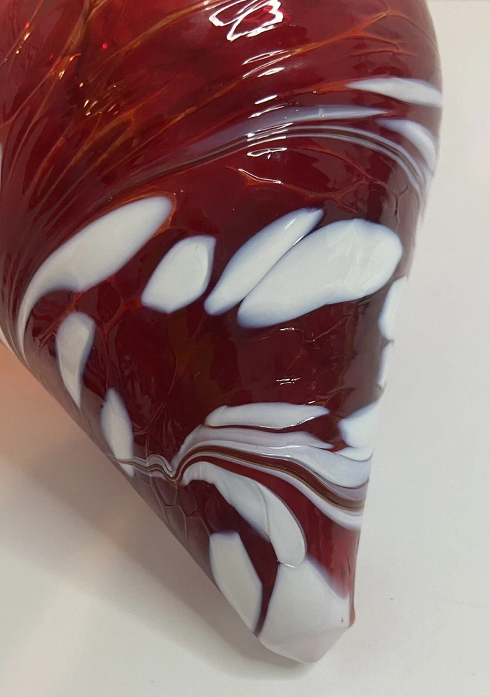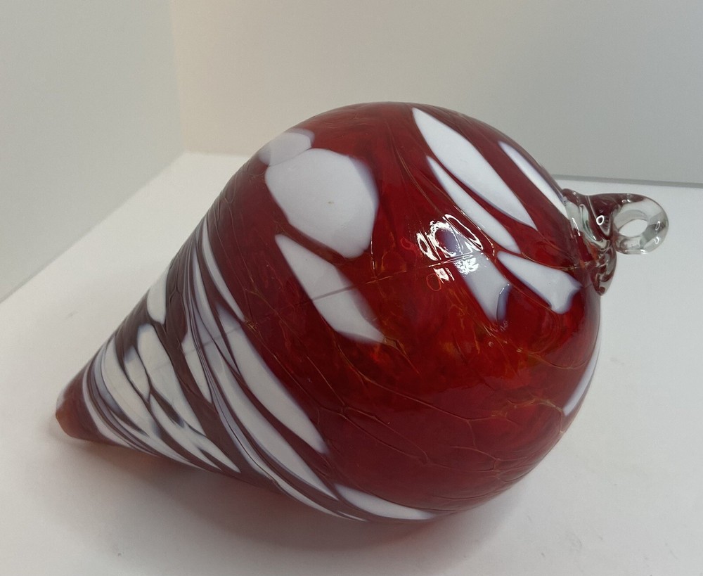 THIS IS A STUNNING HANDCRAFTED BLOWN GLASS ORNAMENT. IT IS TEARDROP SHAPE IN RED AND WHITE. MEASURES 7" TALL AND HAS A CIRCUMFERENCE OF 12.25" (AT THE LARGEST PORTION). IN VERY GOOD PRE-OWNED CONDITION. NO CHIPS OR CRACKS. PLEASE SEEE PHOTOS FOR DETAILS. THANK YOU FOR TAKING THE TIME TO LOOK AT OUR AUCTION. PLEASE MAKE SURE THAT YOUR CONFIRMED ADDRESS ON YOUR E-BAY ACCOUNT IS CORRECT. I WILL NOT TAKE RESPONSIBILITY FOR PACKAGES SENT TO THE WRONG ADDRESS. IF YOU HAVE MOVED PLEASE TAKE THE TIME TO CHANGE YOUR ADDRESS ON YOUR E-BAY ACCOUNT ! FEEL FREE TO E-MAIL US WITH ANY QUESTIONS YOU MAY HAVE. PLEASE CONTACT ME WITH PAYMENT PLANS WITHIN 24 HOURS OF AUCTION END. PLEASE ASK ALL QUESTIONS BEFORE BIDDING OR USING BUY IT NOW! PLEASE DO NOT ASK FOR CHANGES AFTER YOU HAVE BID OR USED BUY IT NOW! WE DO NOT TRY TO MAKE MONEY ON SHIPPING COSTS, WE CAN NOT CONTROL THE COST HOWEVER. LARGE ITEMS COST MORE TO SHIP AND TO PACK. SHIPPING MATERIALS ARE VERY EXPENSIVE. SOMETIMES WE HAVE TO BUY SPECIAL BOXES AND SHIPPING SUPPLIES FOR A CERTAIN ITEM. PLEASE DO NOT E-MAIL ME AND ASK ME TO LOWER THE SHIPPING COSTS. I LIVE IN OHIO, SO THE FURTHER YOU LIVE FROM ME, THE HIGHER THE SHIPPING COSTS. IF YOU HAVE A PROBLEM WITH YOUR ITEM PLEASE CONTACT ME BEFORE LEAVING NEGATIVE FEEDBACK. I WILL DO WHAT I CAN TO MAKE THE SITUATION RIGHT. I WANT YOU TO BE HAPPY. IF YOU ARE HAPPY, PLEASE LEAVE FIVE STAR RATINGS, THIS IS HOW E-BAY RATES US. BID WITH CONFIDENCE, WE HAVE BEEN BUYING AND SELLING ON E-BAY SINCE INCEPTION.