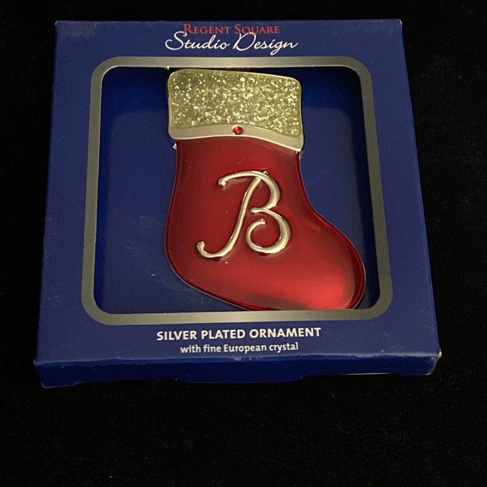 You are looking at a very unique, beautiful and colorful enamel ornament that is personalized with an initial. This ornament features a red enamel main part and a white glitter top part. There is also a silver-colored B in the middle. Too cute! Please note: This ornament is BRAND NEW and has never been used. However, the box has some bending from storage. Please note: The box may look different than the picture, but the ornament will be the same. :-) **Shipping & handling: US standard shipping is FREE! There is a 1 business day handling time on all items after payment is received. Shipping will be via USPS economy mail, which usually arrives in 1-7 business days. Box x65