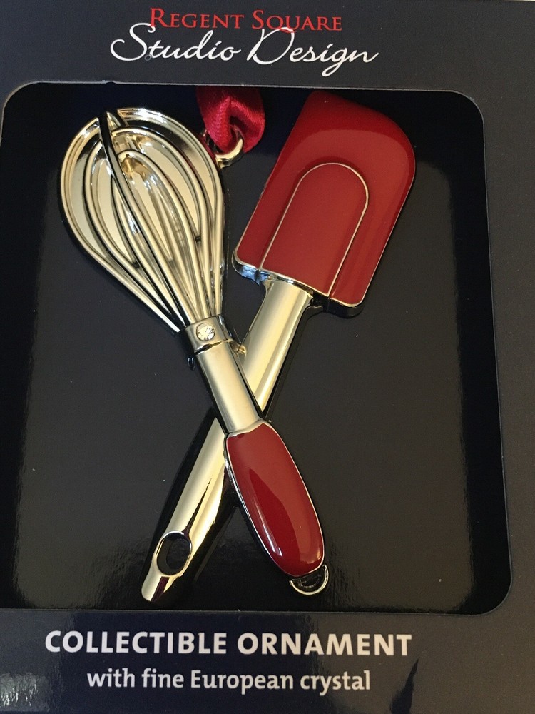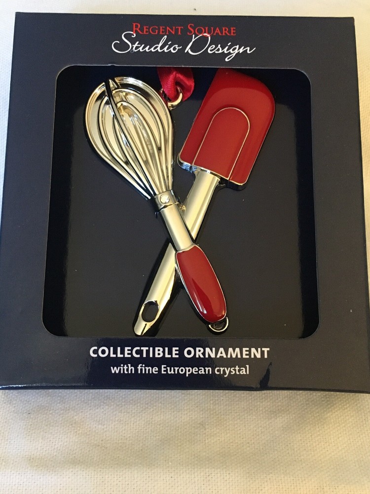You are looking at a very unique, beautiful and colorful enamel ornament. It features a set of baking utensils, a whisk and a spatula. The whisk has a European crystal on the handle. I added one of these to a batch of cookies for a friend last year as a gift. Too cute! Please note: This ornament is BRAND NEW and has never been used. However, the box has some bending from storage. **Shipping & handling: US standard shipping is FREE! There is a 1 business day handling time on all items after payment is received. Shipping will be via USPS economy mail, which usually arrives in 1-7 business days. Item will also be shipped with delivery confirmation. If you need this item sooner- feel free to message us to make arrangements for faster shipping at an additional charge. *Return policy: PLEASE NOTE: Due to the seasonal nature of this item, returns will ONLY be given if the item is misrepresented and only within 14 days of arrival, as confirmed by USPS delivery confirmation4 Box x43