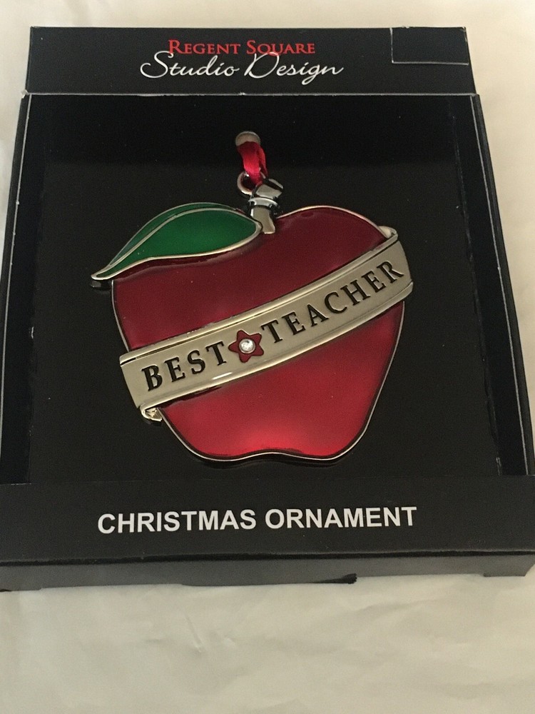You are looking at a very unique, beautiful and colorful enamel ornament. It features red glittery enamel main part with a silver colored band in the middle that says "Best Teacher!" There is also a star on the top with a european crystal gemstone in the middle. Too cute! Please note: This ornament is BRAND NEW and has never been used. However, the box has some bending from storage. **Shipping & handling: US standard shipping is FREE! There is a 1 business day handling time on all items after payment is received. Shipping will be via USPS economy mail, which usually arrives in 1-7 business days. Item will also be shipped with delivery confirmation. If you need this item sooner- feel free to message us to make arrangements for faster shipping at an additional charge. Box X43 and 43B<