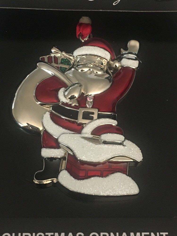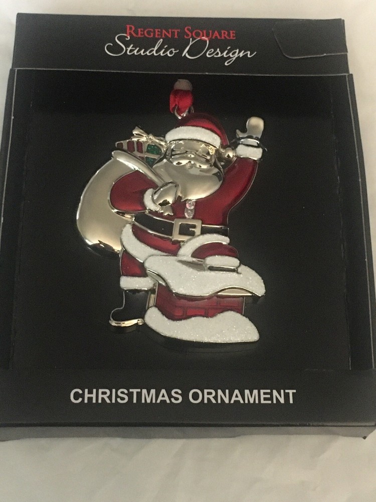 You are looking at a very unique, beautiful and colorful enamel ornament. It Is a happy Santa and his bag of goodies, He is dressed in his suit with Crystal buttons on the front. He has 1 foot in the chimney ready to make a delivery. Too cute! Please note: This ornament is BRAND NEW and has never been used. However, the box has some bending from storage. **Shipping & handling: US standard shipping is FREE! There is a 1 business day handling time on all items after payment is received. Shipping will be via USPS economy mail, which usually arrives in 1-7 business days. Item will also be shipped with delivery confirmation. If you need this item sooner- feel free to message us to make arrangements for faster shipping at an additional charge. Box 43B
