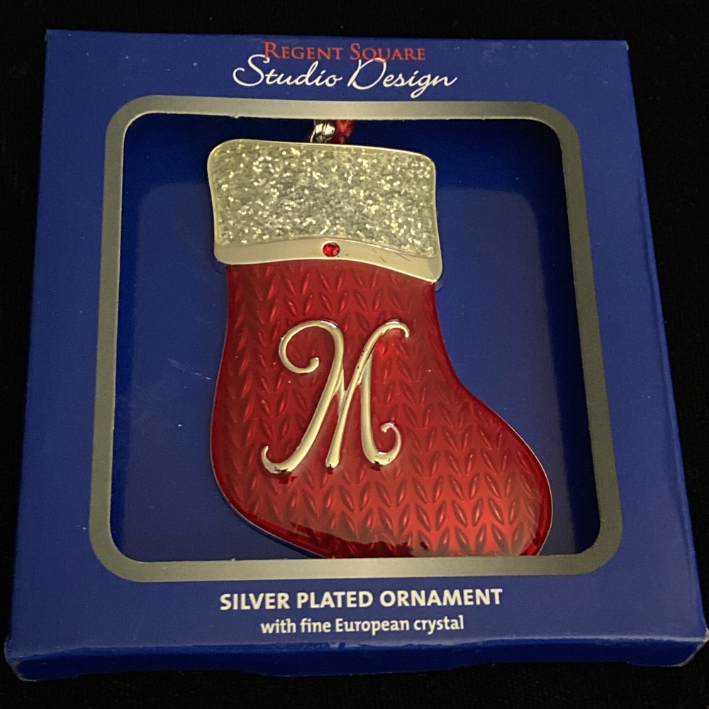 You are looking at a very unique, beautiful and colorful enamel ornament that is personalized with an initial. This ornament features a red enamel main part and a white glitter top part. There is also a silver-colored M in the middle. Too cute! Please note: This ornament is BRAND NEW and has never been used. However, the box has some bending from storage. Please note: The box may look different than the picture, but the ornament will be the same. :-) **Shipping & handling: US standard shipping is FREE! There is a 1 business day handling time on all items after payment is received. Shipping will be via USPS economy mail, which usually arrives in 1-7 business days. Box x43