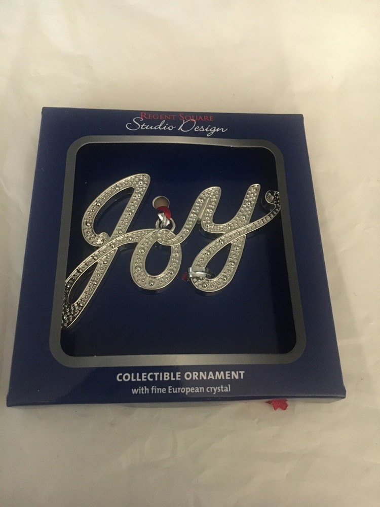 You are looking at a very unique, beautiful silver colored ornament.This is a simple word ornament . It is the word “JOY”. . Please see pictures for a better description. Too cute! Please note: This ornament is BRAND NEW and has never been used. However, the box has some bending from storage. **Shipping & handling: US standard shipping is FREE! There is a 1 business day handling time on all items after payment is received. Shipping will be via USPS economy mail, which usually arrives in 1-7 business days. Item will also be shipped with delivery confirmation. If you need this item sooner- feel free to message us to make arrangements for faster shipping at an additional charge. Box X43 and 43B