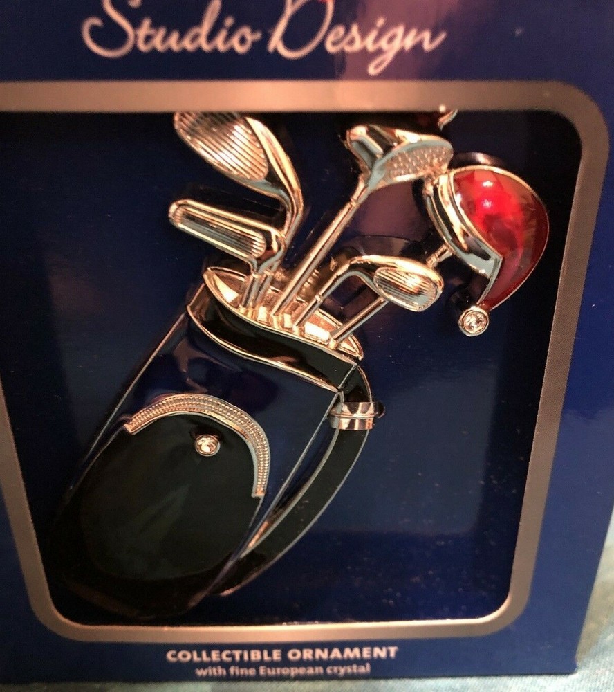 New, Regent Square Studio Design collectible ornament with fine European crystal. Golf bag and clubs with a red santa cap golf club cover has a crystal at the end, as well a one crystal in the middle of the golf bag. 4" tall x 1" 1/2 wide. See photos for full description, photos are of the actual auction item. Color - Actual color may differ from the photo due to lighting conditions. Please view photos of actual items carefully, they are part of the item's description and condition. Shipping - I ship within the U.S. only, If you are purchasing more than one item from me and would like combined shipping, please send me an email requesting combined shipping. If you are selecting Media mail or USPS Parcel Select Ground, please KNOW that it WILL take longer than the 9 days the USPS states. Payment - Payment is due within 3 days of sale. Customer Service - Before purchasing any item, please ask any questions or request whatever photos are necessary to ensure that you will be satisfied with what you are purchasing. Thanks for looking!