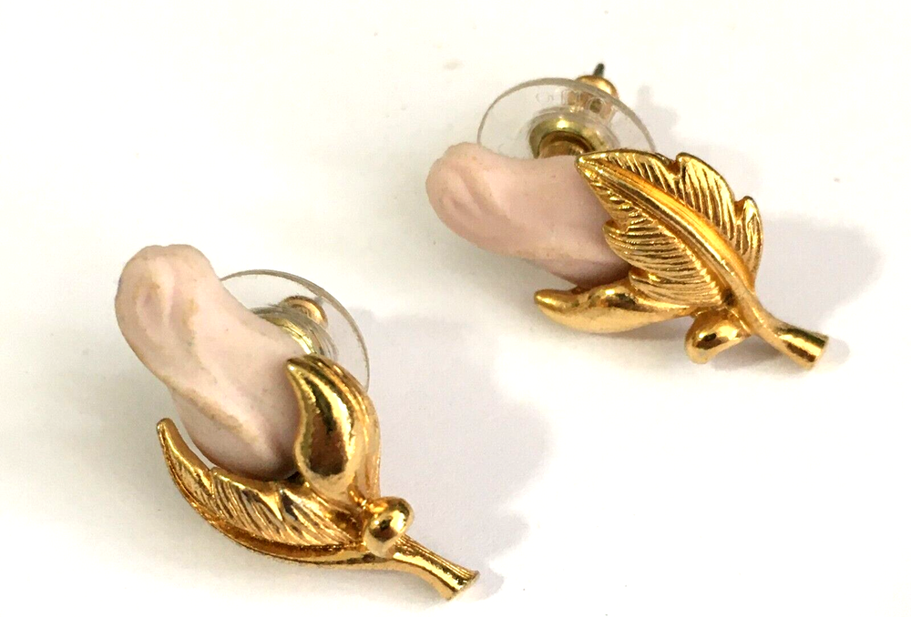 or a birthday, holiday, or just because. The delicate pink rose adds a feminine touch, and the gold tone gives them a classy finish. Lightweight and comfortable to wear, these earrings are a lovely addition to any jewelry collection. Truly a charming piece that stands out without being too flashy—great for rose lovers and vintage enthusiasts!