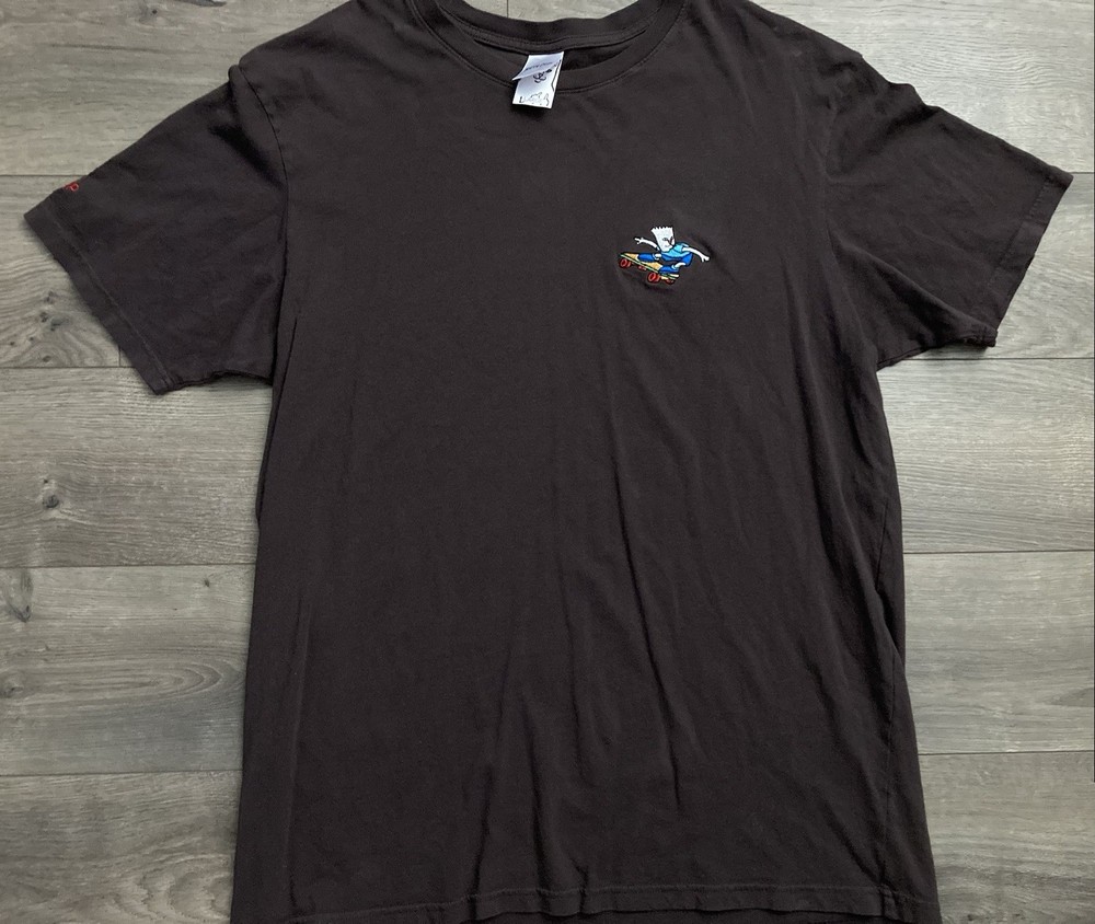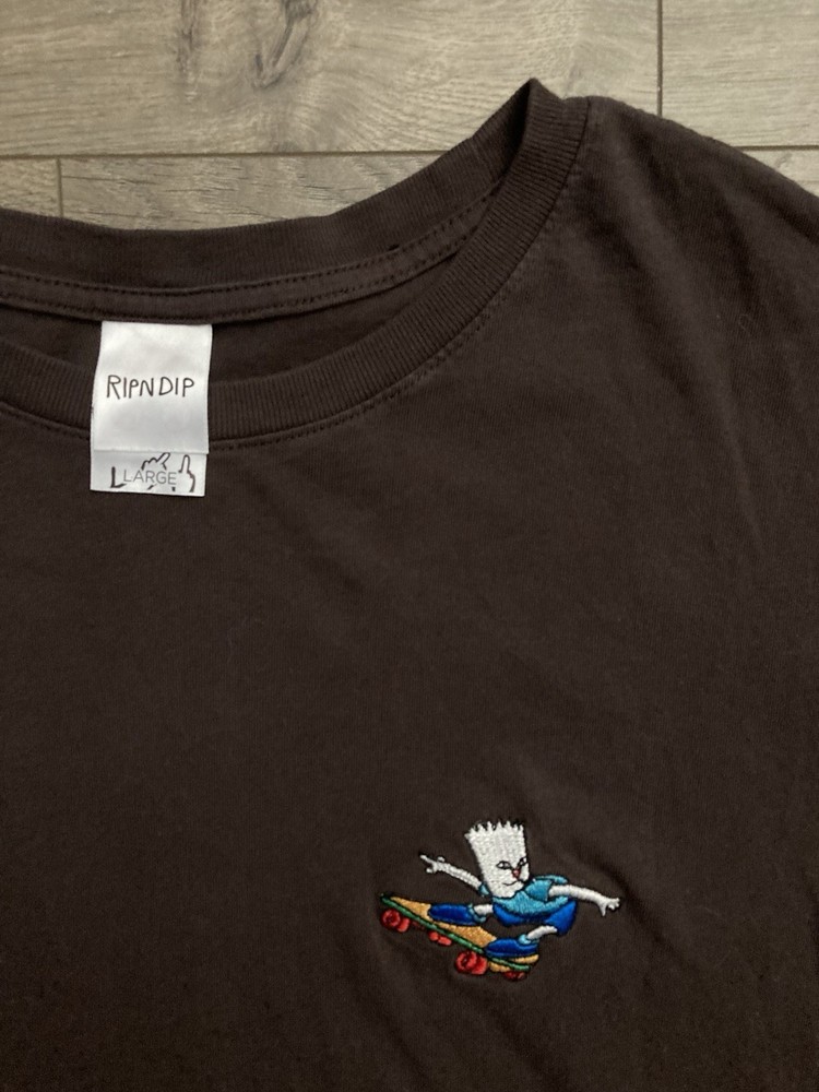 The RIP N DIP Skater Cat T-shirt is a classic and stylish piece featuring a Lord Nermal cat design embroidered on the front. This red t-shirt with a crew neck and short sleeves is made from cozy cotton knit fabric, making it perfect for all seasons. With a skate-inspired theme and fun animal character, this unisex t-shirt is a great choice for those who love streetwear style and colorful designs. The t-shirt is machine washable and bears the iconic RIPNDIP logo, adding a touch of retro flair to any outfit.