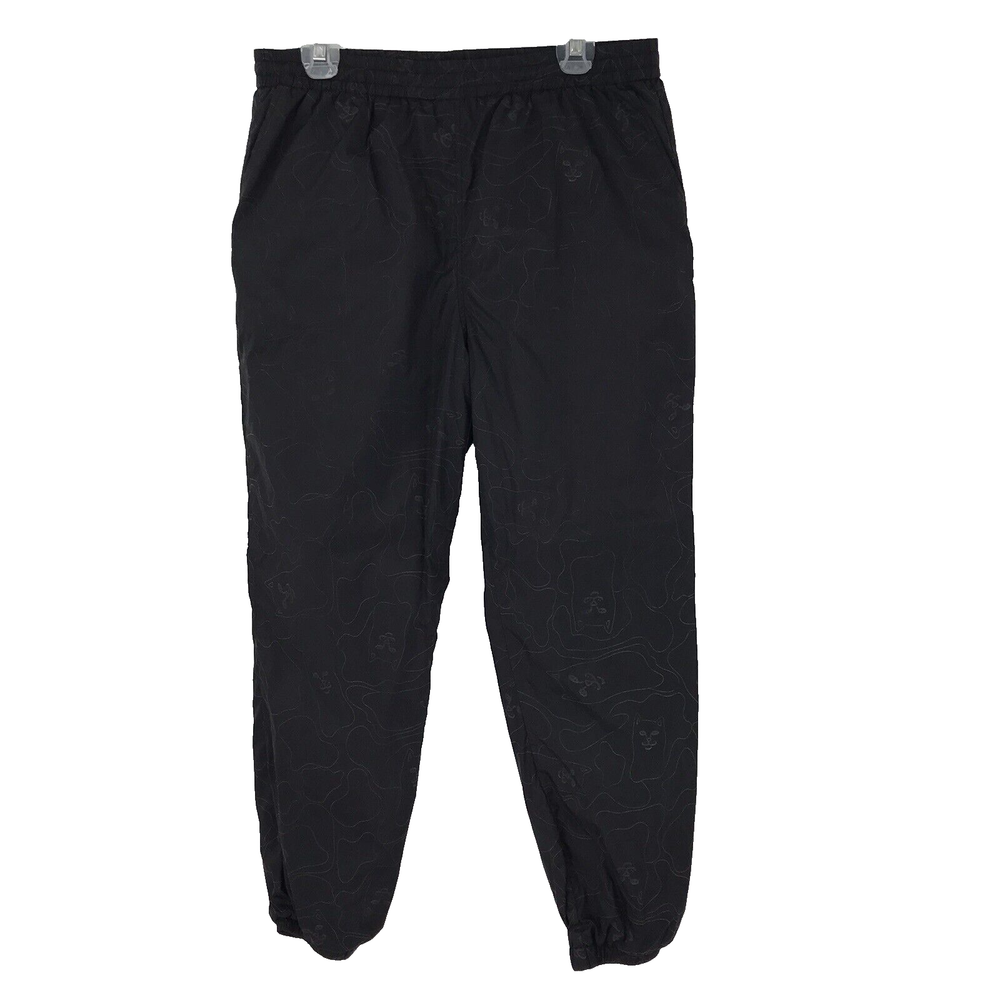 RIPNDIP Rip N Dip Lord Nermal Black Track Pants Drawstring Joggers Cat Men Large. B3914 bin Good used condition with wear as pictured. Actual measurements: Waist (laid flat and doubled) 34” Inseam 29” Front rise 12.5” Leg cuff opening (laid flat) 5.5”