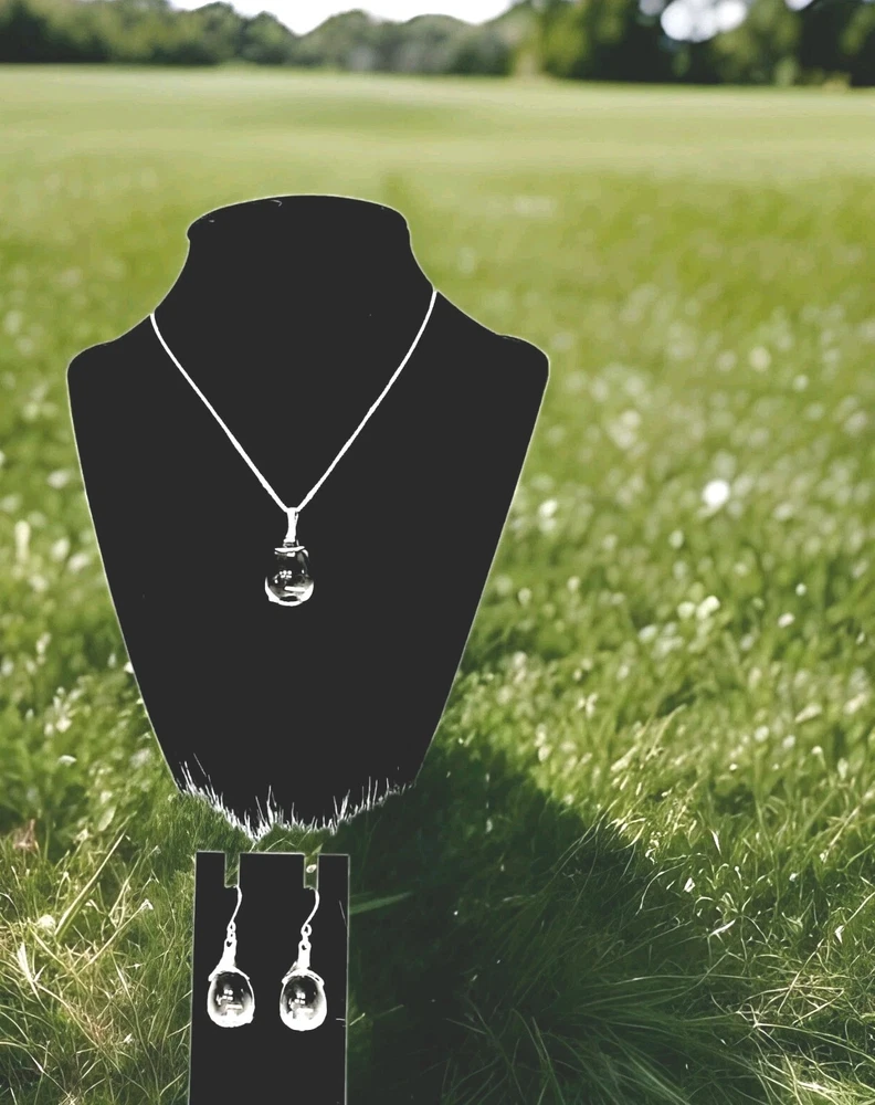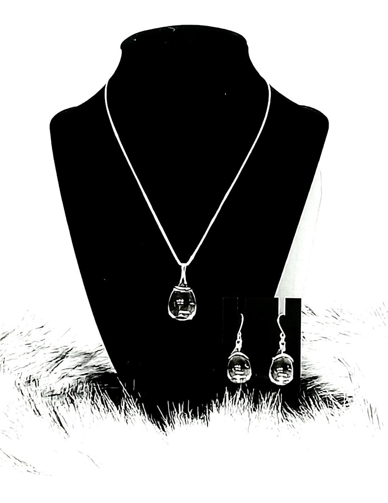 Elevate your style with this stunning RLM Studio necklace and earring set, featuring the Iconic Pools of Light design. The teardrop-shaped pendant showcases a beautiful natural quartz stone in a Sterling Silver teardrop-shaped casing. The necklace is made of high-quality sterling silver and quartz, with a total weight of the set 38 grams. The necklace has a 13"drop or a 26"long on a marked RLM chain, and the set comes with 1.5" long RLM matching quartz earrings. The lobster closure ensures a secure fit, and the simplicity of the design makes it suitable for all occasions. This set is signed by RLM Studio and is a must-have for anyone looking to add an elegant and timeless piece to their jewelry collection. I also have a matching RLM Pools of Light ring size 8 on my site. Check it out for a complete set. Add this beautiful RLM set to your jewelry collection and get ready for lots of compliments when you wear it. Please see photos for additional measurements, ask any questions you might have, and thank you for shopping my site. 😊