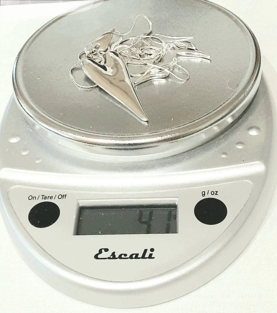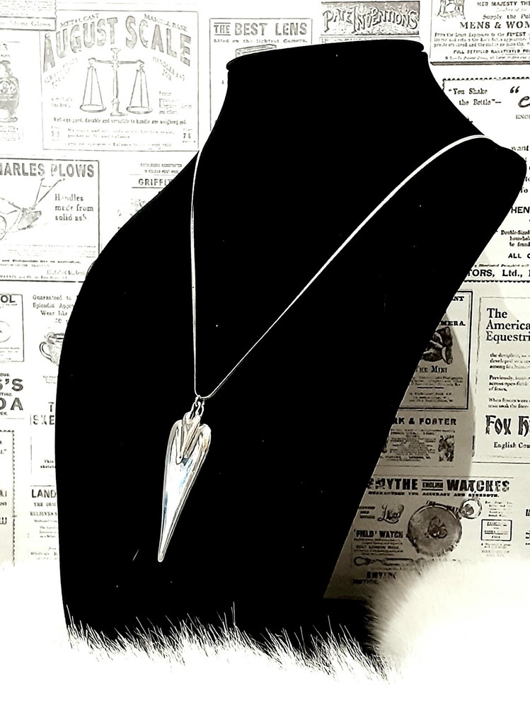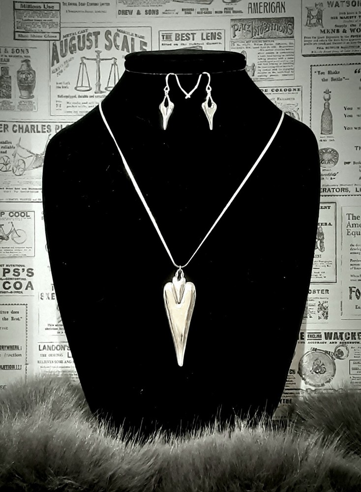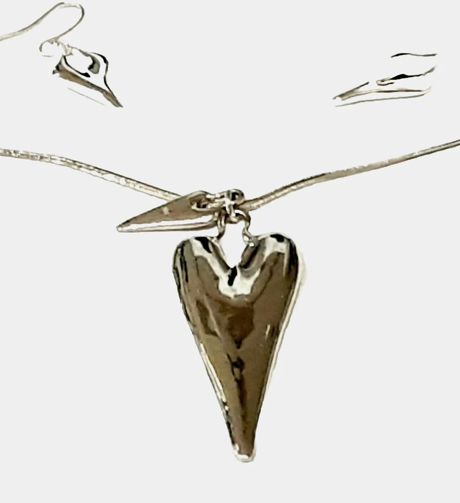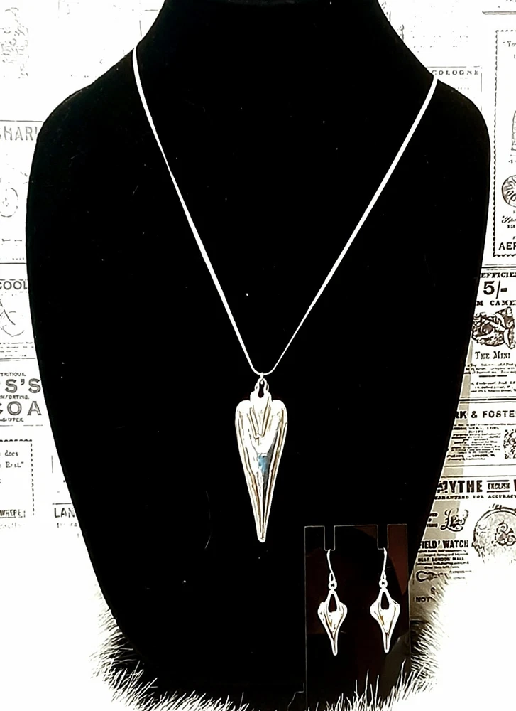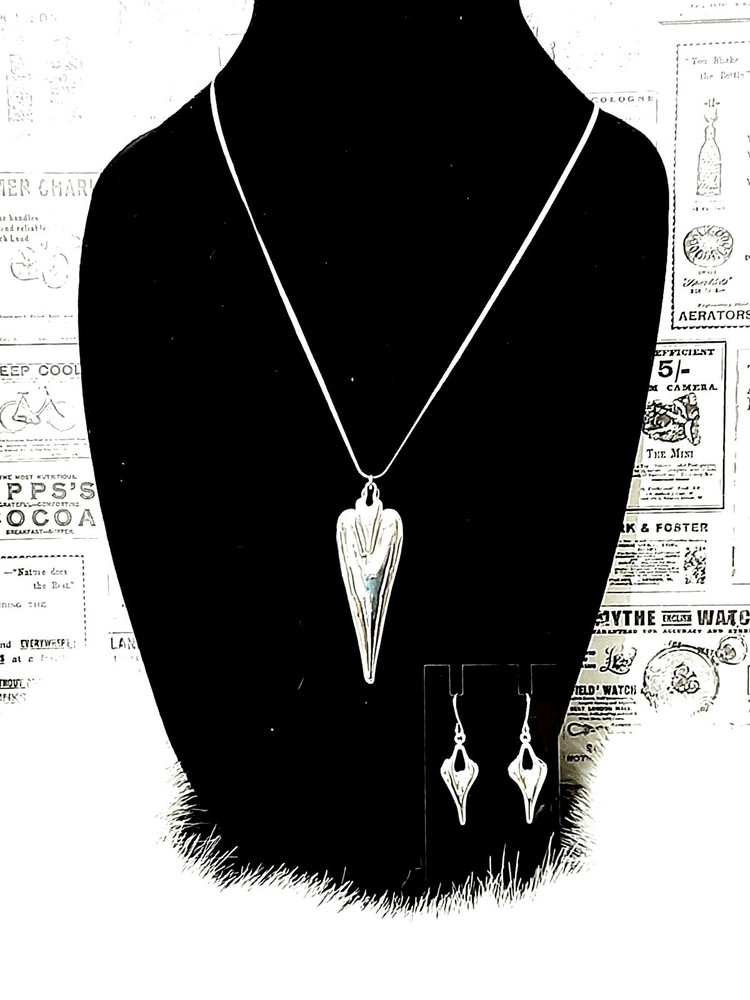 This stunning RLM Studio necklace and earrings set is a must-have for any jewelry collection. Crafted from high-quality 925 sterling silver, the set features a beautiful long double heart-shaped pendant on a 11" long drop necklace, with matching 1"3/4 long earrings. The Heart to Heart theme adds a touch of romance to any outfit, making it suitable for all occasions. This set is a very rare RLM piece and not found to often. It is a true collectors item. The set is signed by RLM and includes a total sterling silver weight of 41 grams. The pendant width is 1" wide and the pendant length is 2.5" long. The set is perfect for anyone who loves the concept of heart-shaped jewelry and is looking for a rare, unique and elegant addition to their collection. Please see photos for additional measurements, ask any questions you might have and thank you for shopping my site. 😊