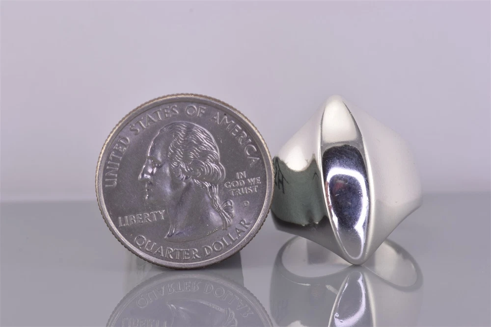 RLM Studio Sterling Silver Modernist Wedge Tapered Statement Band Ring 925 Sz: 9 R 9h Sellers comments: Beautiful ring for any occasion Metal: Solid Sterling Silver Metal Purity: 925 parts per 1000 Tested: Acid & Magnet Ring Size: 9 Ring Height (mm): 24 mm Ring Weight (grams): 11.5 g How to know what size ring you need Knowing this could also allow for a half size up or down to easily fit too. Be sure to check out our half sized rings in our eBay store for even more options. Please be aware that rings can and do fit differently depending on the size and shape of your finger. The design of the ring will affect how it fits as well. If the ring is solid and wide it might fit more like the next size down. If it is hollow it might fit like it is a bigger size etc. It all depends on the ring design and the shape of your finger. When a ring fits properly it should slide on easily, but will resist just a bit when coming off, even taking 2-3 seconds to get back over the knuckle. This is normal, and especially common with men, who typically have larger knuckles. If you size your ring to your knuckle, it will be too big on your finger. Millimeters to Inches 3mm is approximately 1/8 inch 6mm is approximately 1/4 inch 13mm is approximately 1/2 inch 19mm is approximately 3/4 inch 25mm is approximately 1 inch 50mm is approximately 2 inches 75mm is approximately 3 inches Payment We participate in eBays managed payments. We accept Paypal along with Visa Mastercard Discover and American Express Credit cards can be used through Paypal or eBay. Payment are expected to be made within 3 days. We reserve the right to cancel any transaction after 4 days as to eBay policies. Shipping All items will ship within 24 hours or less except Sundays and Holidays. We combined shipping. Just wait for the invoice. We reserve the right to require Signature Confirmation. We reserve the right to add insurance. These prices will already be included in shipping fee listed. Shipping Schedule Monday - Saturday (excluding Holidays) - Items paid before 10:00am will be shipped same day Sunday (Closed) - Items will be shipped Monday. Shipping within the United States First Class shipping with tracking unless marked otherwise. Other options are Priority mail, Priority Express mail and priced accordingly. Buyers can upgrade the shipping at checkout or items will ship First Class. We will only ship to verified addresses registered in eBay. We will only ship USPS. See specific item for actual shipping cost. Original shipping fees will not be refunded. International Shipping Canada, United Kingdom and Australia All other countries will require eBay Global shipping service. No exceptions. Buyers will be responsible for return shipping costs. Buyers are responsible for any import fees due. We can not mark items as gifts. Please verify shipping costs before buying. Hassle Free 30 day Returns Buying jewelry online can be concerning. How will it fit? How will it look? and unfortunately there are times when an item needs to be returned. If your not completely satisfied with your purchase please return it for a full refund. It is more important to us that you are happy rather then just making a sale. We have a FREE 30 day unconditional return policy with 100% refund for your buying confidence. Any returns requested after 30 days will be declined. All returns must be returned with original packaging with security tag intact. If you have any questions please contact me and I will happily help you. About us We are a business that mainly deals in precious metals located east of Pittsburgh Pa. We developed the eBay store for the sole purpose of helping a few single mothers the ability to work a job that fits into their constantly changing schedules. It also allows them the opportunity to learn how to run and operate their own online business if they ever choose to. We are thankful you took the time to explore our store so come on in and have a look around. Hopefully you find something that dazzles you. Contact us Most questions can be answered by simply reading the information provided in the listings. For size references and conversions Google can be a very useful tool. If you cant find the answer to your question just ask and we will do our best to answer them immediately. Powered by SixBit's eCommerce Solution