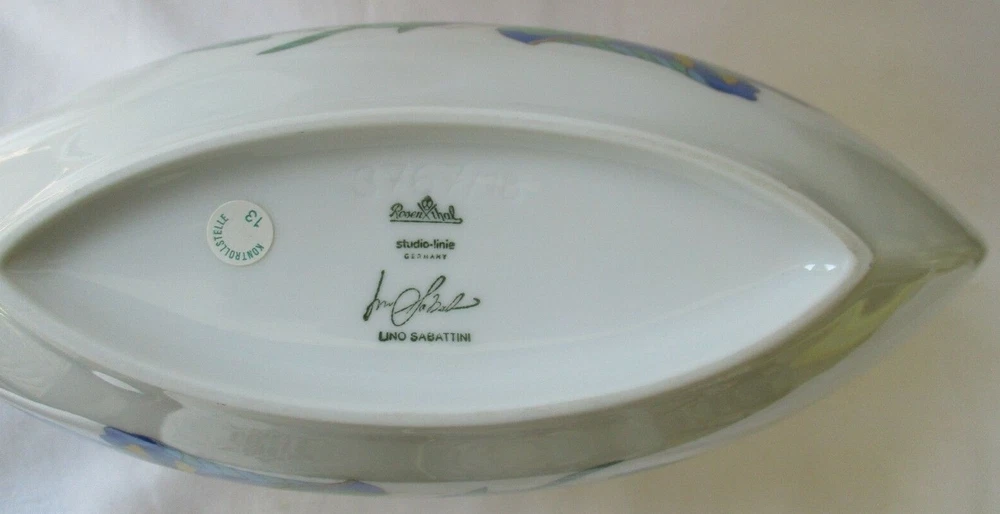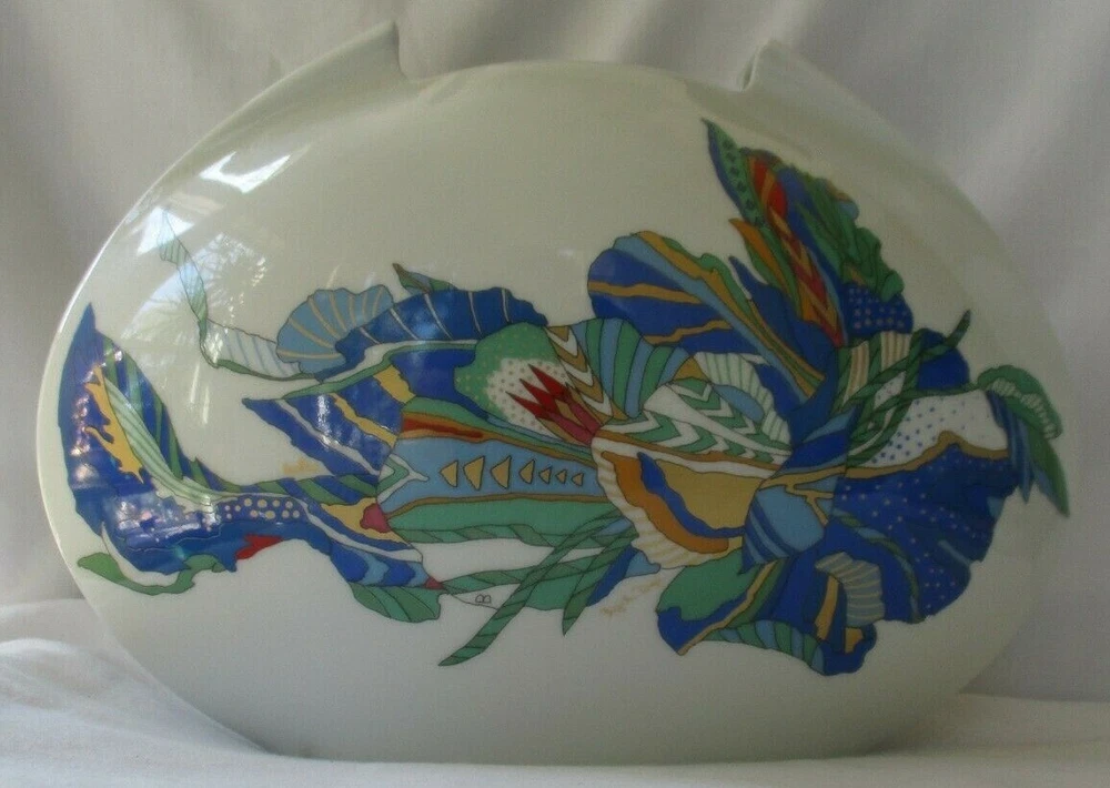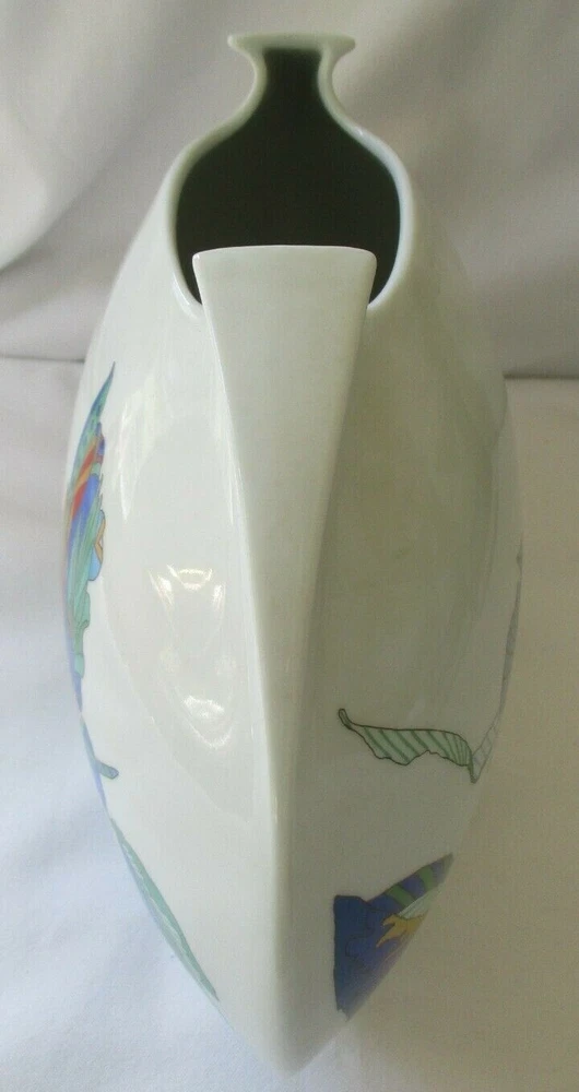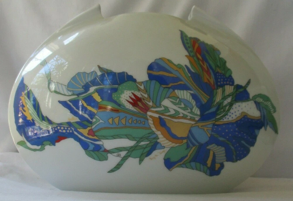VINTAGE ROSENTHAL STUDIO LINIE LINO SABATTINI TASCA PORCELAIN VASE WITH BRIGITTE DOEGE DESIGN - SIGNED IN LIKE NEW CONDITION - SHIPPED IN A WOOD BOX MEASURES 7-1/2" HIGH - 11" WIDE - ABOUT 4" DEEP TOP OPENING IS 3-3/4" X 2" - A REAL BEAUTY FAST SAFE INSURED SHIPPING WORLDWIDE IMMEDIATE PAYMENT REQUIRED