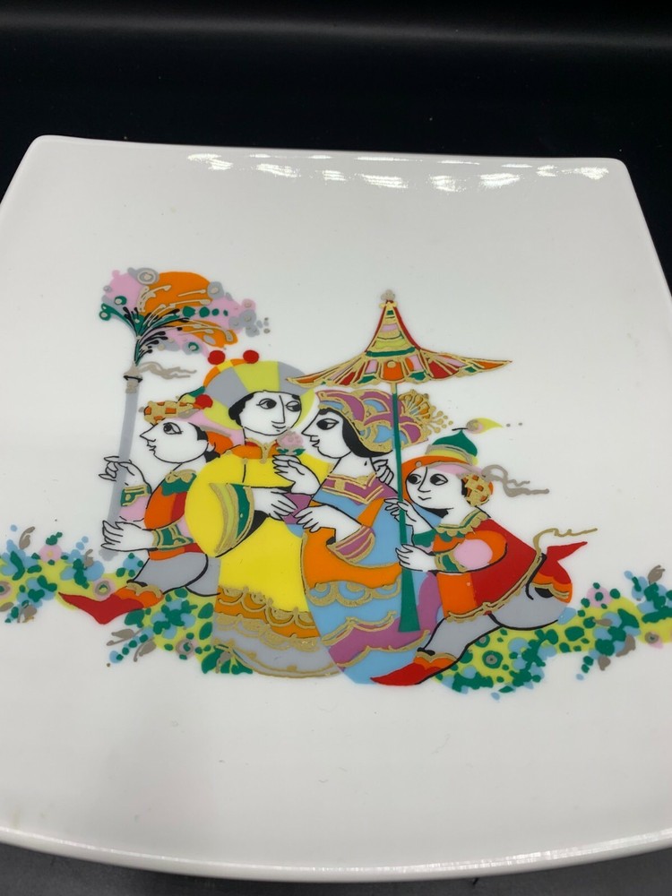 ROSENTHAL STUDIO-LINIE SQUARE CONCAVE DISH/PLATE OFFERED FROM AN OLD ESTATE IS THI COOL VINTAGE ROSENTHAL STUDIO-LINIE SQUARE SHAPE CONCAVE PLATE. THE TOP HAS A COLORFUL BJORN WIINBLAD DESIGN. THE DISH MEASURES 7" X 7". NO DAMAGE............ALL ITEMS SOLD AS IS. AFTER AUCTION INSTRUCTIONS BELOW. QUESTIONS? I pack with lots of TLC, but If a package is unfortunate to arrive with a damage......IT IS NOT A RETURN FOR ITEM NOT AS DESCRIBED... IT IS AN INSURANCE CLAIM WITH THE SHIPPER.... Please check- shipping & payments- for shipping options available for this auction. Please understand that I do not calculate the shipping cost- Ebay does. I just enter the weight & size of box. Ebay has been calculating high lately so if i can mail it for less I will refund the difference through paypal. USPS includes only the first $50 worth of insurance. Anything over that I have to add so please wait for my invoice. UPS includes the first $100 worth of insurance , so anything over that please wait for my invoice. Thanks for reading... Once payment is made through paypal, the package will mailed in aprox. 4 ***WEEK**** days from the day payment is received( weekends not included) . ***INTERNATIONAL BUYERS-****Please read***PAYMENTS ACCEPTED-paypal ***I WILL NOT CHANGE THE PACKAGE VALUE ON THE SHIPPING LABEL**** All packages are packed with lots of TLC but If damage does occur during shipping, PLEASE contact me so an insurance claim can be opened.. I will file the paperwork being the shipper. Please do not open an - ****ITEM NOT AS DESCRIBED*** All shipping quotes after the auction are based on UNPACKED items. Once packed and ready to mail,if the package comes up considerably more than what was quoted & paid, it will be my decision to mail the package using another shipping company that charges an amount closer to what was paid by the buyer. I ship the address listed with PAYPAL ONLY**I WILL NOT CHANGE THE SHIPPING TO ANOTHER ADDRESS. I PRINT MY SHIPPING LABELS DIRECTLY FROM PAYPAL OR EBAY** I will email the buyer with in 24 hours after the auction ends with the total amount due based on the information on file with ebay through ebay-checkout. ***VERY IMPORTANT*** Due to many people winning and never sending their payment, If I DO NOT receive payment with in 2 days after the auction ends, I will file a non-paying bidder alert with ebay. *****Buyer pays shipping,handling & Insurance. ****I ship either - USPS PRIORITY (Flat rate box if possible) OR UPS GROUND , USPS PARCEL POST & FED-EX ground*** The small handling charge is to cover the cost of buying packing supplies to TRY to insure a safe delivery of your item. *************AUCTION GUIDELINES : Please take a few moments to read and digest the following few lines very carefully so there will be NO misunderstandings after the auction. I strongly encourage you to ask ALL questions prior to bidding. I will do my best to point out any deficiencies in the glass and other items I sell. Occasionally, I may miss something. I URGE you to ask questions if something is important to you that I may have missed. I am not an expert on all items that I acquire & sell. I DO NOT sell on approval after the item is received. If there is a concern once you receive the package please CONTACT Me about it. ALL ITEMS OFFERED FOR AUCTION ARE PREVIOUSLY OWNED AND COME FROM ESTATE LIQUIDATION RANGING FROM GENUINE ANTIQUES TO 20TH CENTURY DECORATIVE ACCESSORIES. ALMOST EVERYTHING SOLD WILL SHOW AGE APPROPRIATE WEAR OR IMPERFECTIONS CONSISTENT WITH NORMAL USE. ANY FLAWS, MANUFACTURING GLITCHES OR DAMAGES WILL BE NOTED IN THE DESCRIPTION TO THE BEST OF MY ABILITY. All items are sold as is, as found & as described to the best of my knowledge. DO NOT DUPLICATE OR COPY! Template Made By: © InkFrog.com Auction Templates, Logos, Store fronts and more!