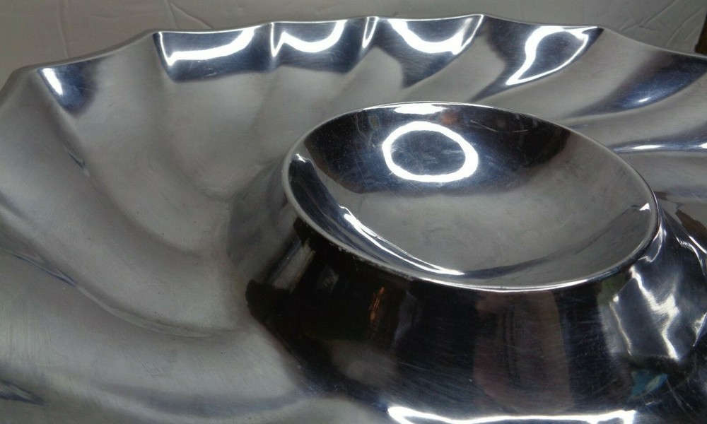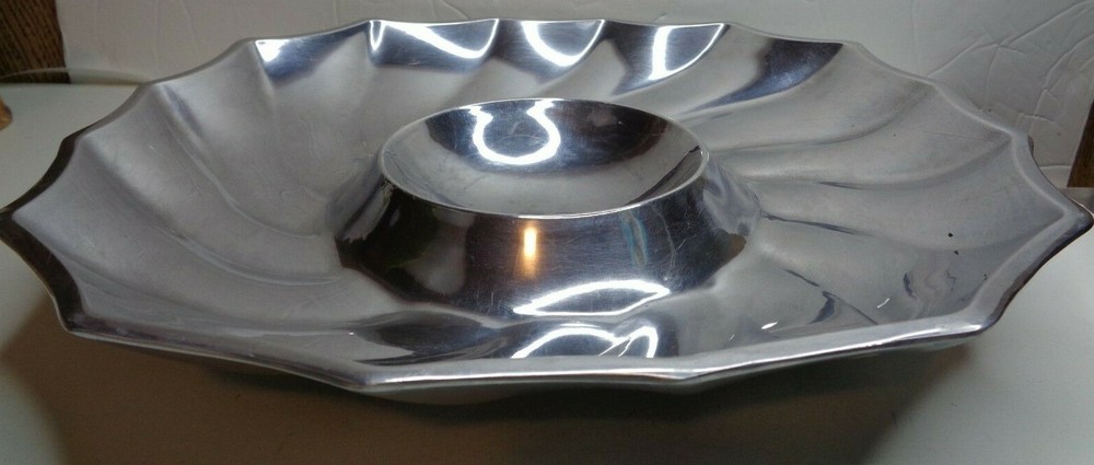 RWP WILTON ARMETALE, Large 10.5" Fluted Swirled Scalloped Pewter Chip & dip Bowl. In good used condition ....