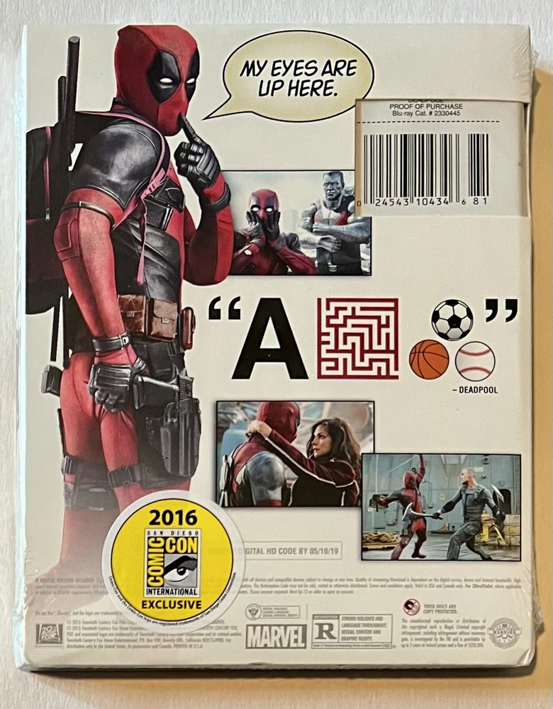 2016 COMIC CON EXCLUSIVE DEADPOOL BLU-RAY WITH SPECIAL EMOJI SLIP COVER SIGNED BY RYAN REYNOLDS! COMES WITH 2016 SDCC EXCLUSIVE STICKER STILL SHRINK WRAPPED AS NEVER OPENED! THESE WERE OFFERED AT THE 2016 SDCC FOR SALE. ALL COPIES WERE SIGNED AND ALL COPIES ARE SHRINK WRAPPED WITH THE OFFICIAL SDCC COA STICKER ON THE BACK! FAST, SAFE, AND SECURE SHIPPING! PRIORITY SHIPPING! SAME DAY OR NEXT MORNING! GLOBAL SHIPPING PROGRAM AVAILABLE!