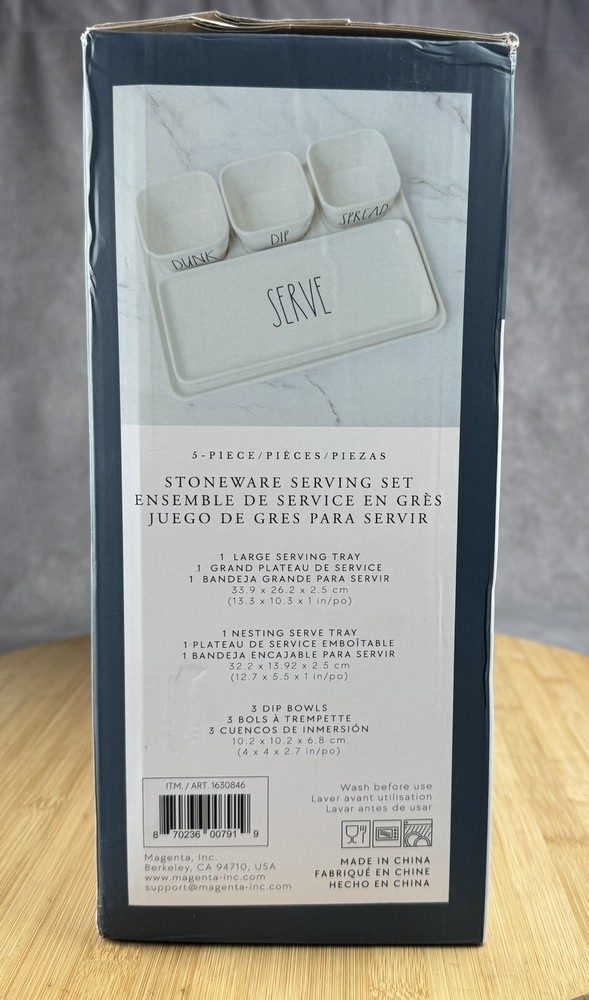 Rae Dunn 5 Piece Stoneware Serving Set Spread Dip Dunk Serve Tray & Dip Bowls
